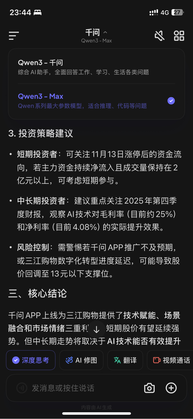 $三江购物(SH601116)$ 挺好用,比豆包专业点