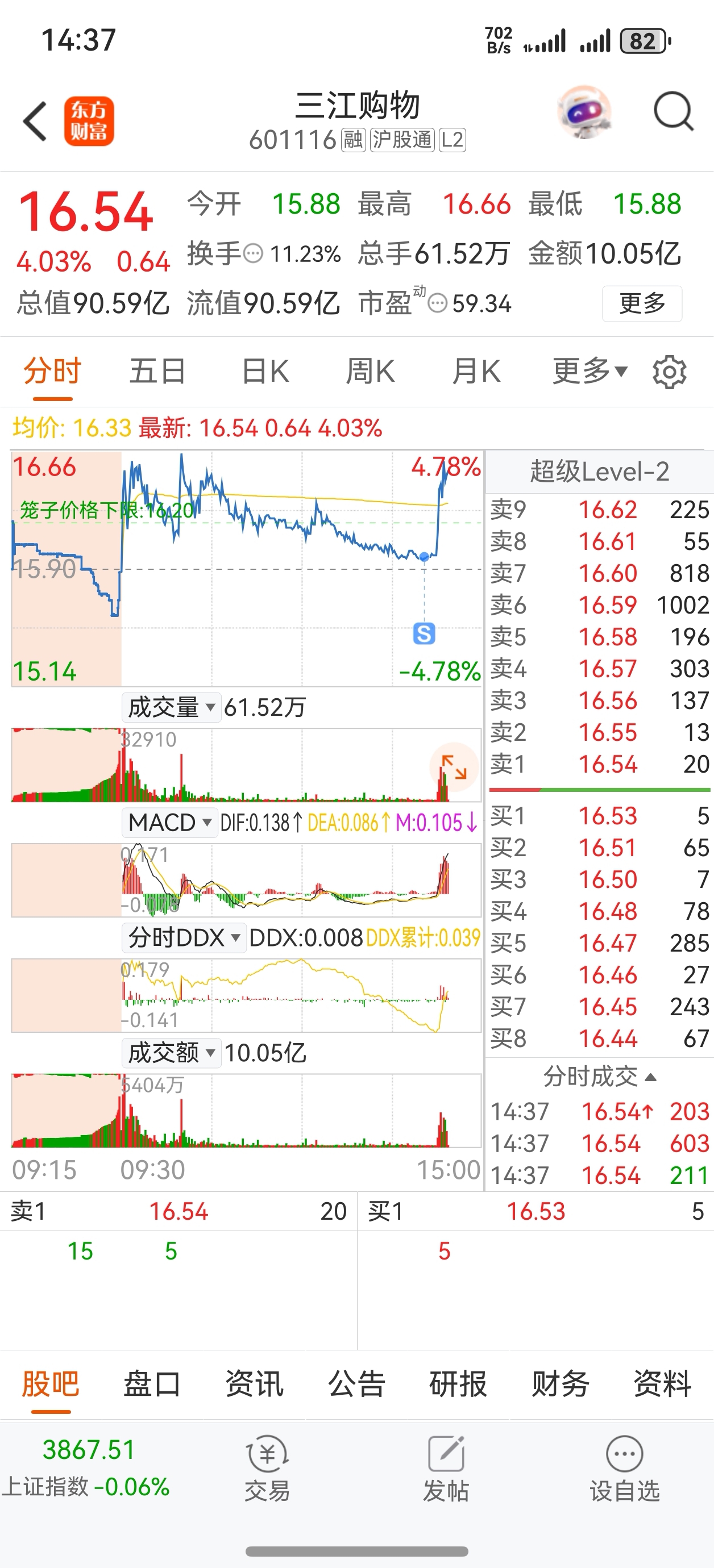 $三江购物(SH601116)$ 主力看到我清仓了吗