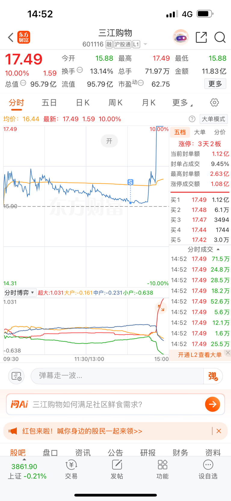 $三江购物(SH601116)$ 来自内心的佩服 主力你赢了