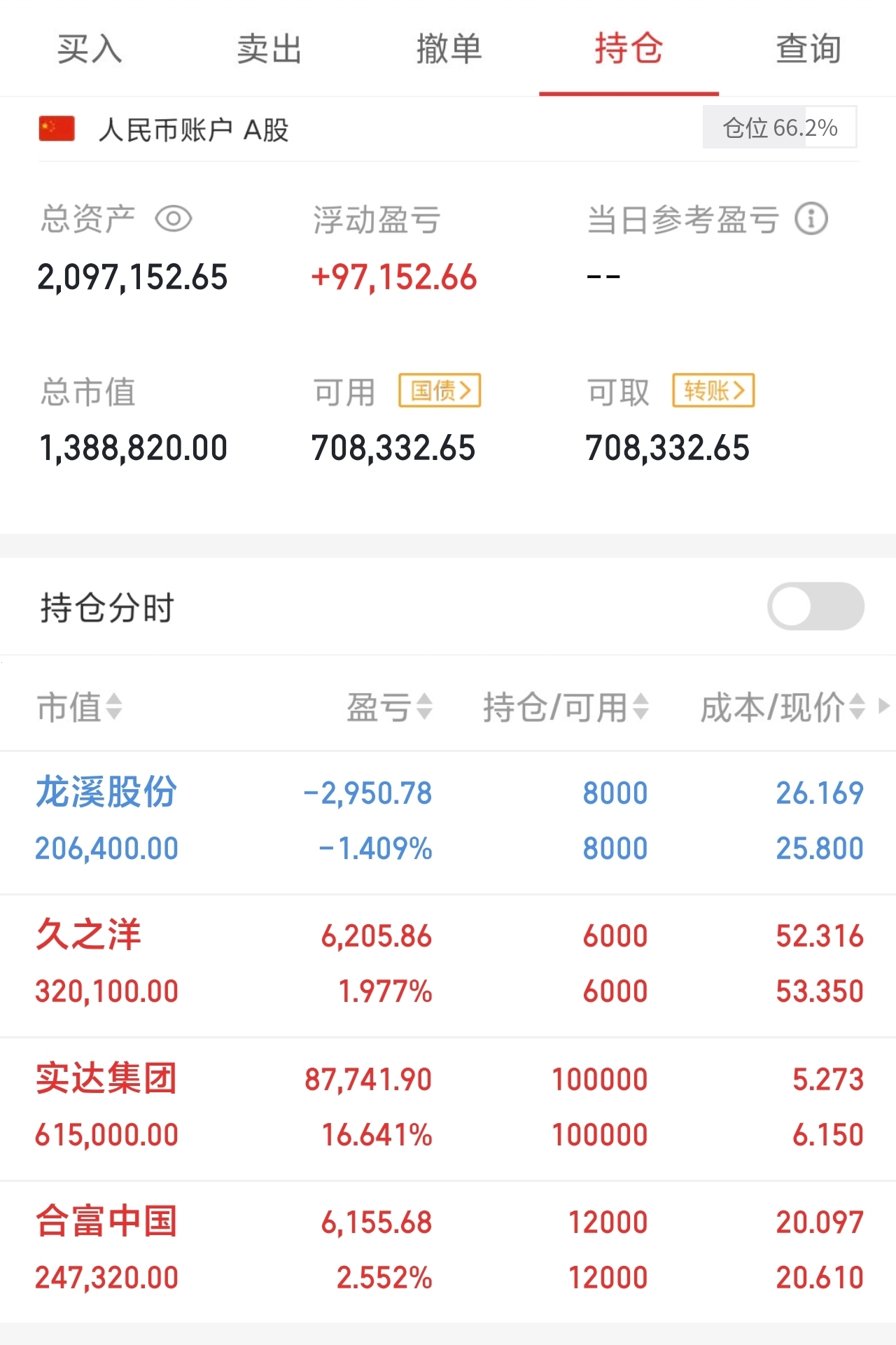 目前持有:合富中国,实达集团,久之洋,龙溪股份