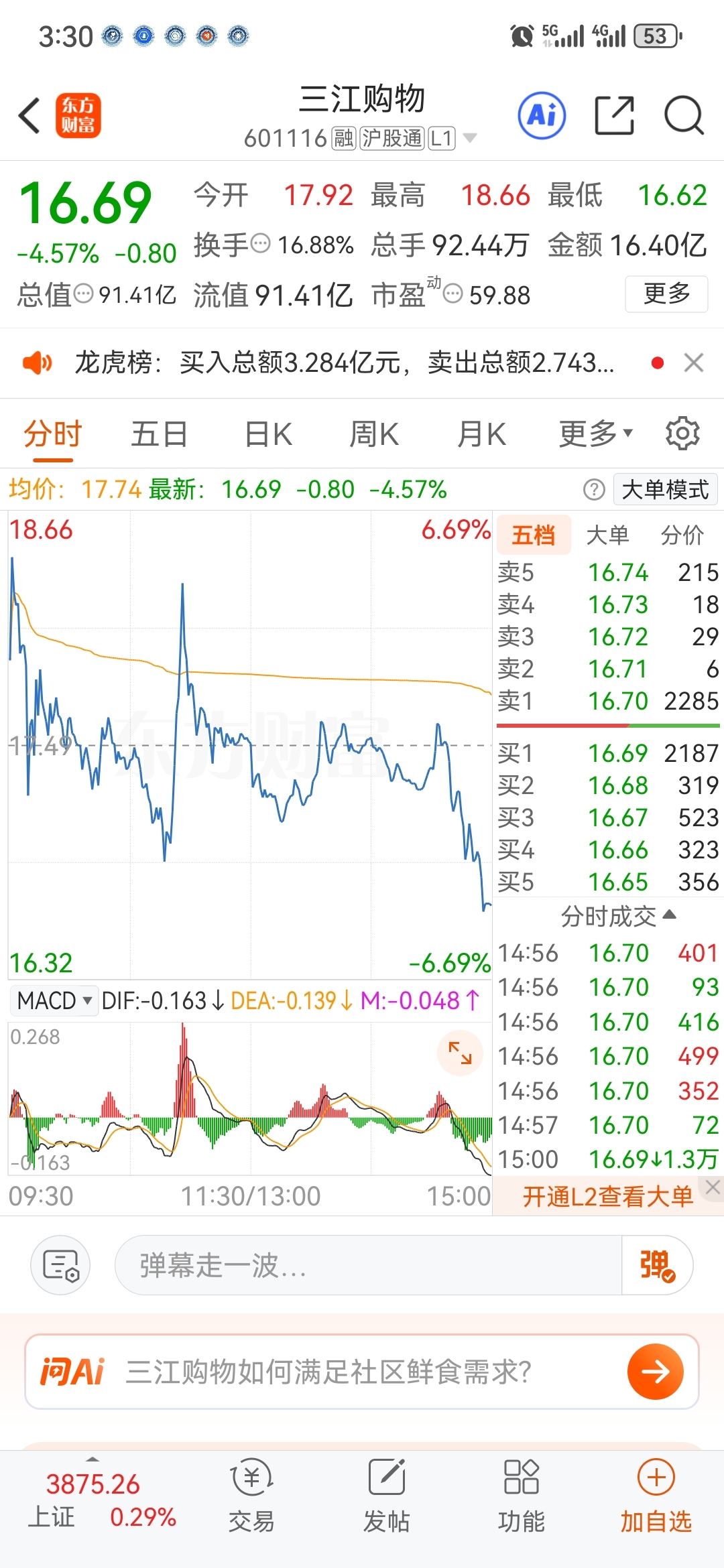 $三江购物(SH601116)$ 专门与消息对着干,都是提前知道消息,然后放消息时间精准配合,最高来个18.66的数字顶,这票基础很不友好,有减持,票子没有国光有武德。算了你品性挡不了龙头。权大家莫要与它玩,有利润大家一起炸。看做的什么事情。