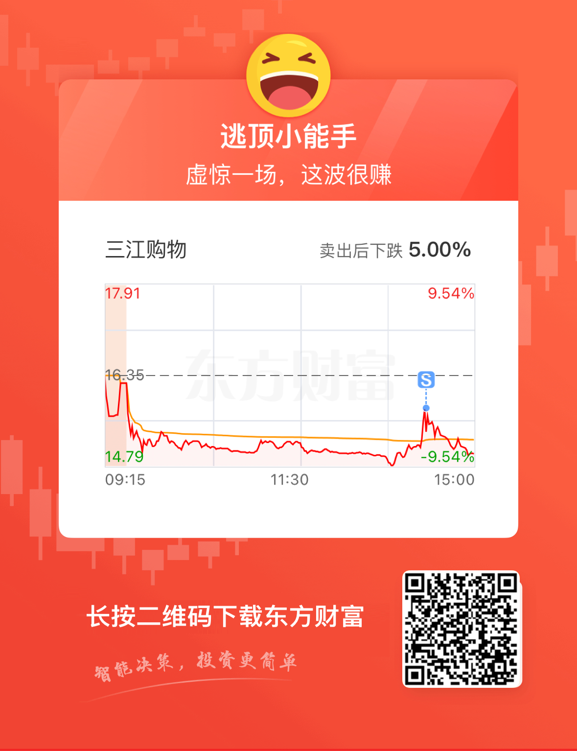 $三江购物(SH601116)$ 亏5个点,割肉走了