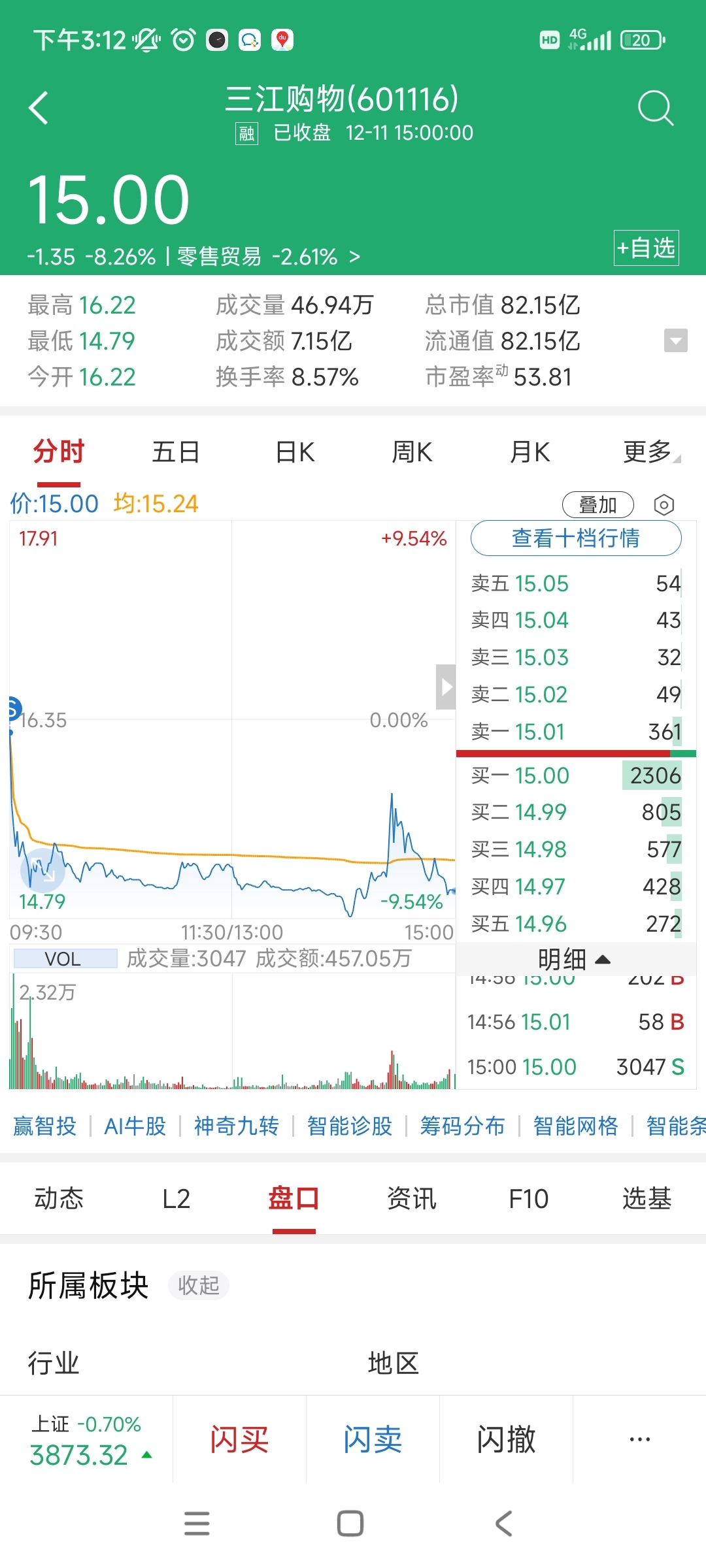 $三江购物(SH601116)$ 要不是哥们我练过,还不被你整成裂啊!又拉黑一只。