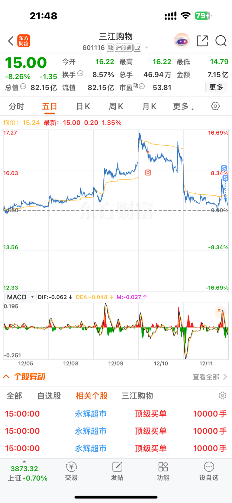 $三江购物(SH601116)$ 永远拉黑,卖了永辉买了你,气死我了