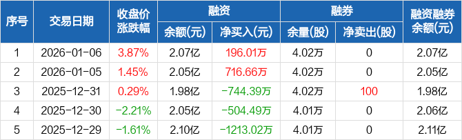 三江购物:融资净买入196.01万元,融资余额2.07亿元(01-06)