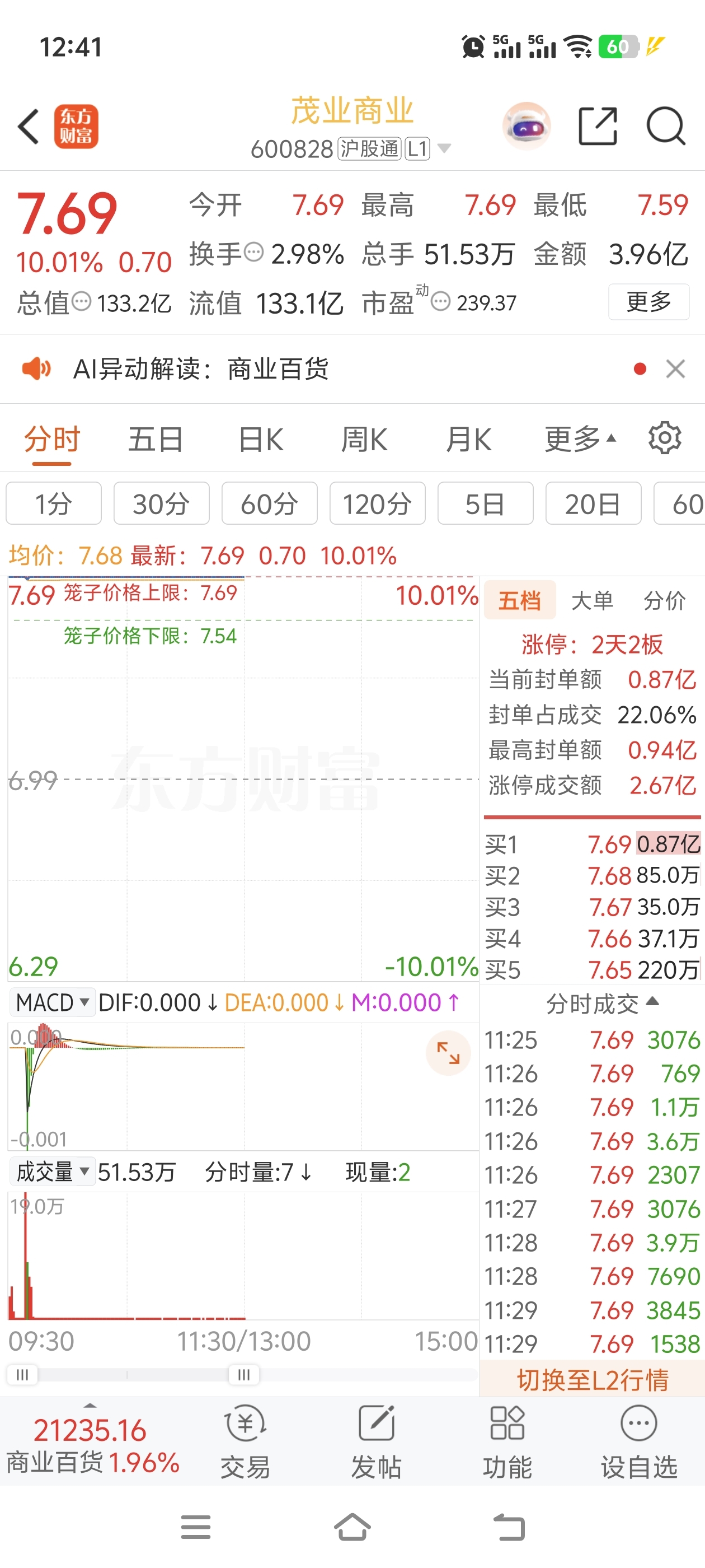 一夜持股法成功两天买中两只涨停板!茂业两天两板!