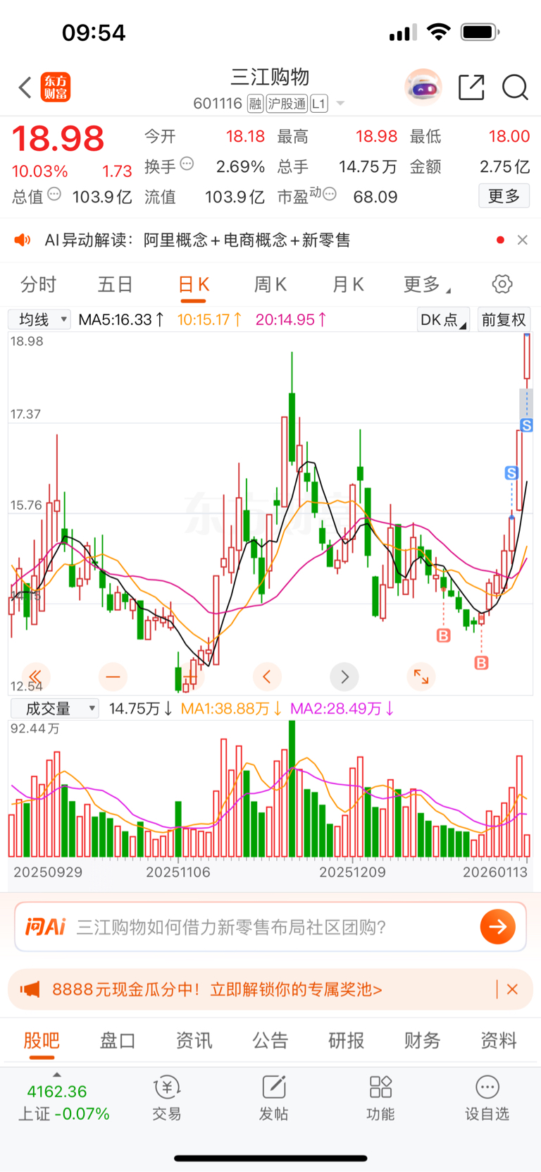 $三江购物(SH601116)$ 感谢主力