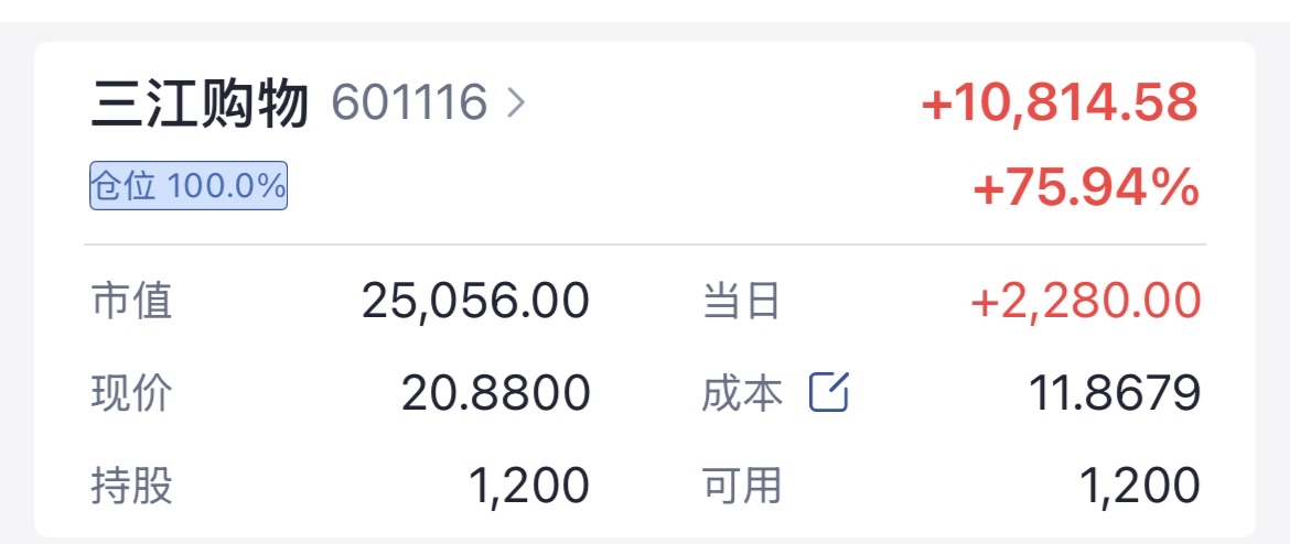 $三江购物(SH601116)$ 都在秀,我也秀一下,翻倍就走人