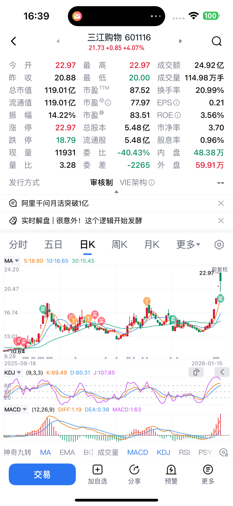 $三江购物(SH601116)$ #周末杂谈# #炒股日记# #复盘记录# #股市怎么看# 周一 跌停附近低开高走……跟随美年健康!接下来继续调整!够狠的话击穿20线启动二波!