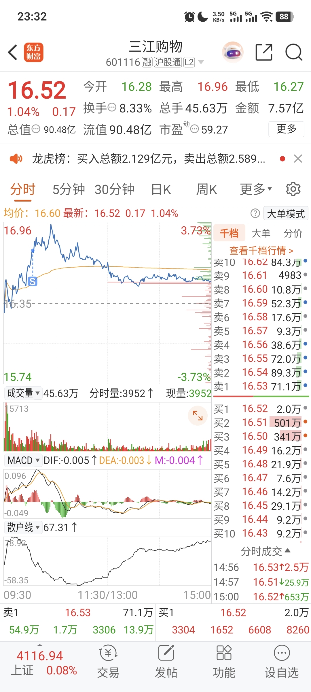 $三江购物(SH601116)$ 兄弟萌,我头不够铁,不抗了哈,另外还有个利欧呢