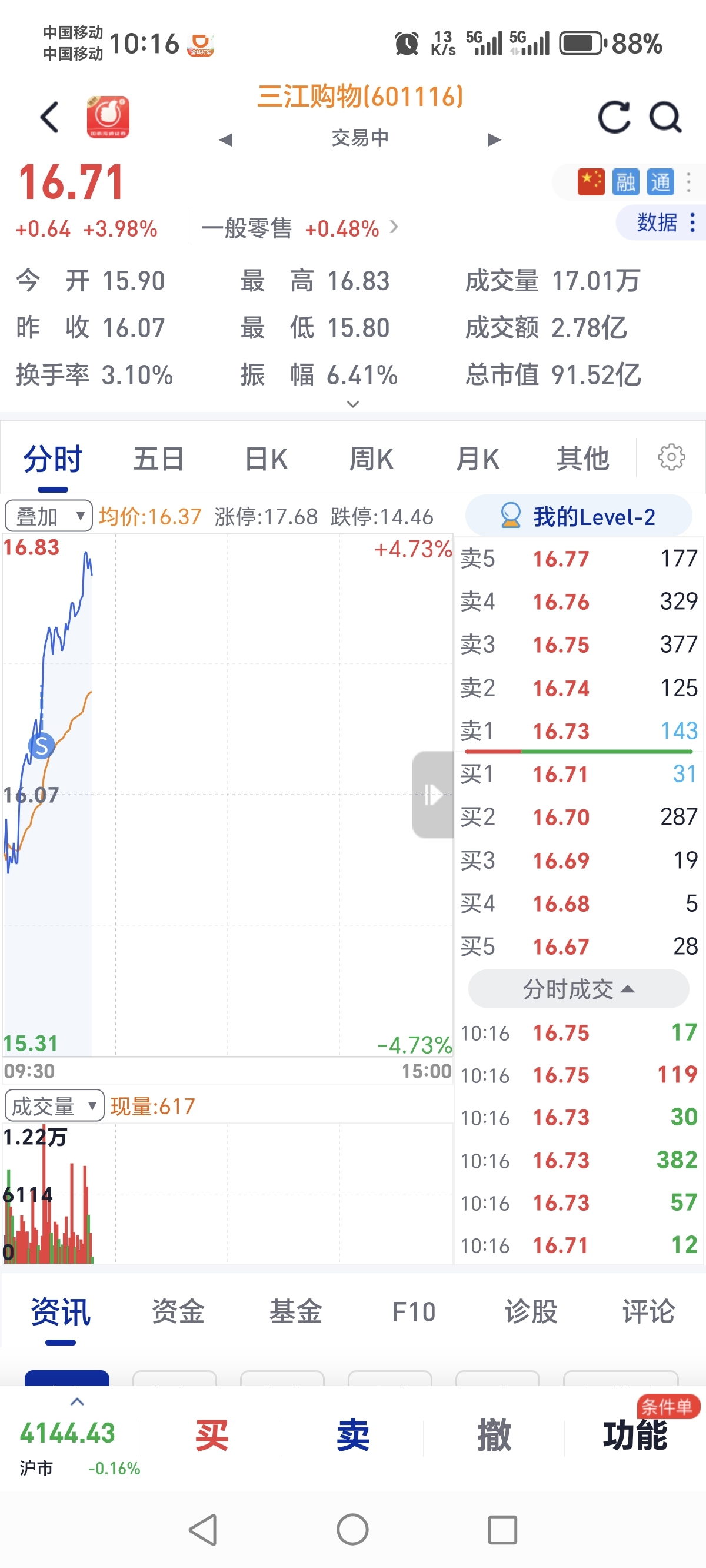 $三江购物(SH601116)$ 一卖就卖飞了