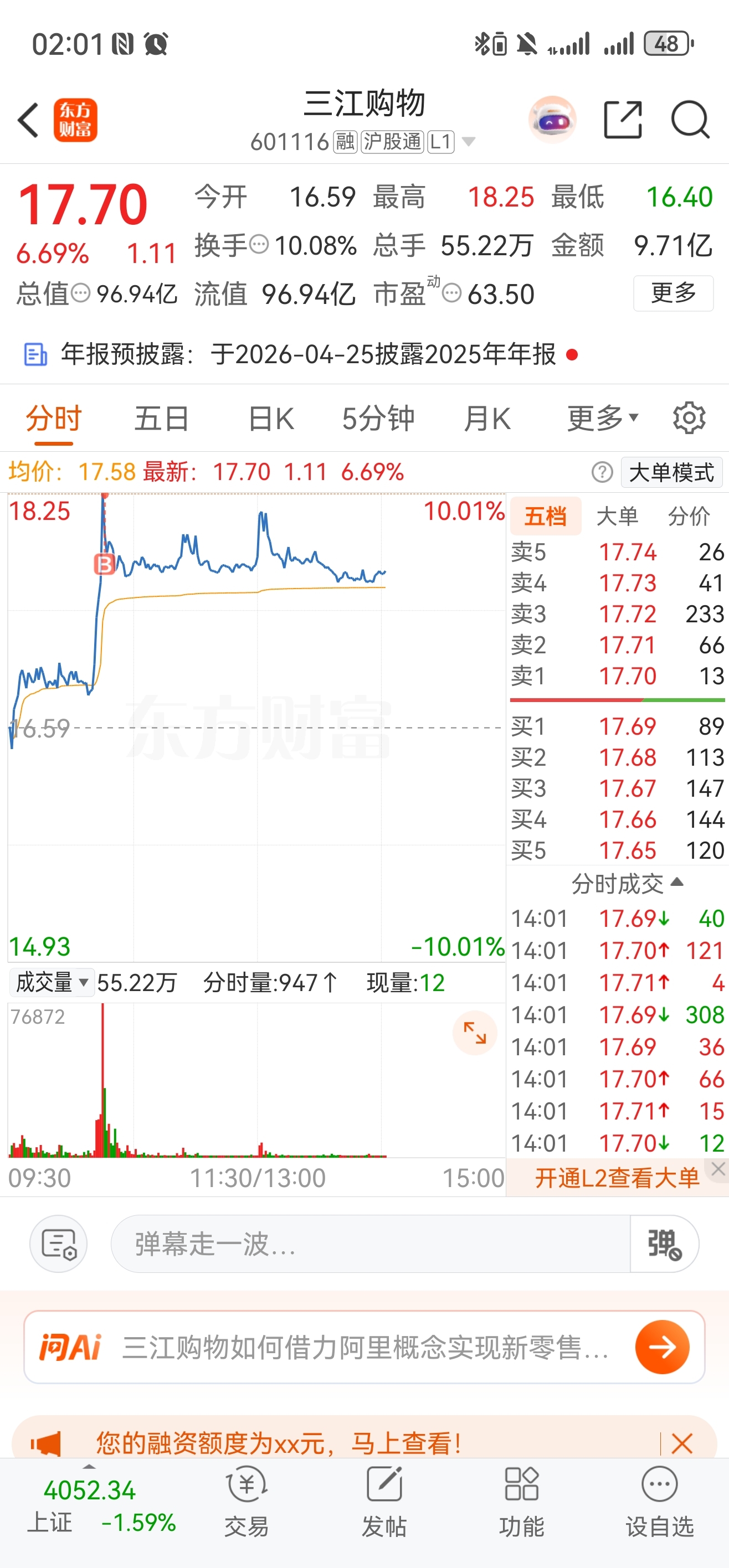 $三江购物(SH601116)$ 对不起大家 是我没封住
