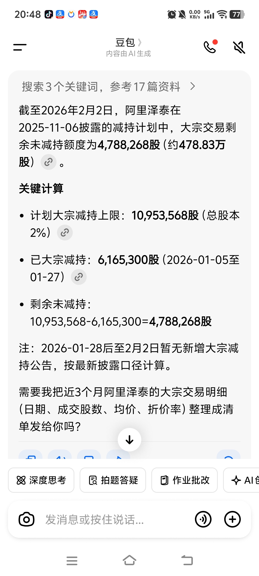 加上29日和2日的420多万股,阿里还剩50多万股没减持了,预计在后天减持完