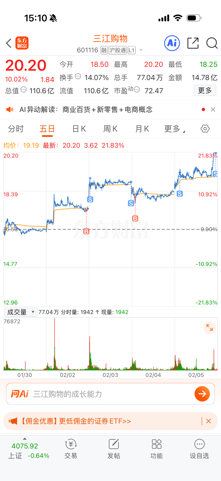 $三江购物(SH601116)$ 溜了溜了,留一手做T