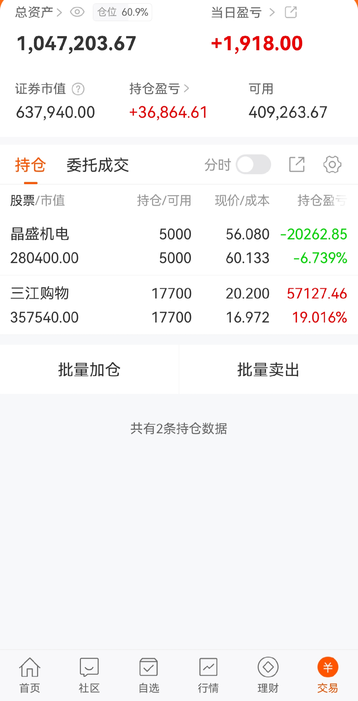 30-100目标完成,下个目标200,实盘记录2.5星期四三江购物不错不错晶盛机