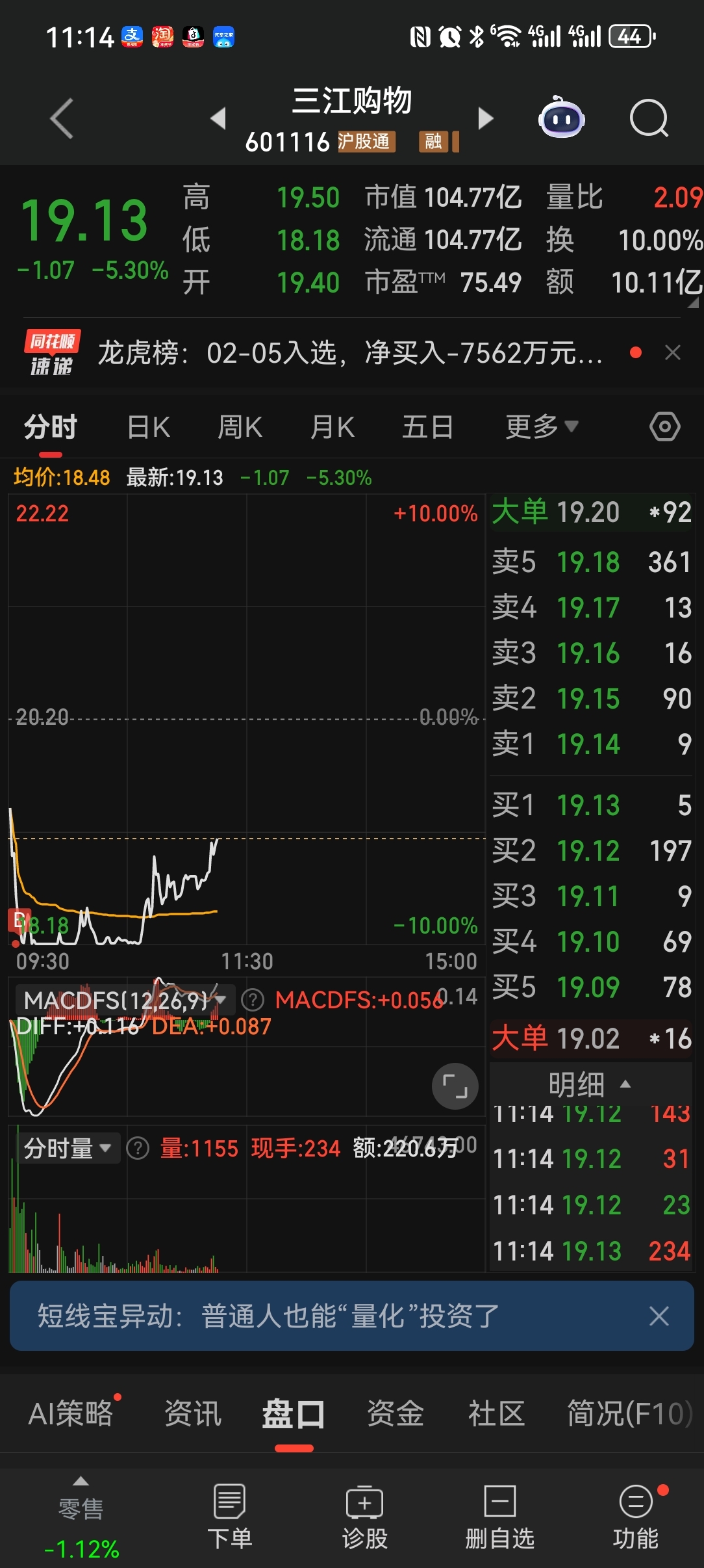 $三江购物(SH601116)$ 也不要什么地天,拉到红盘就行