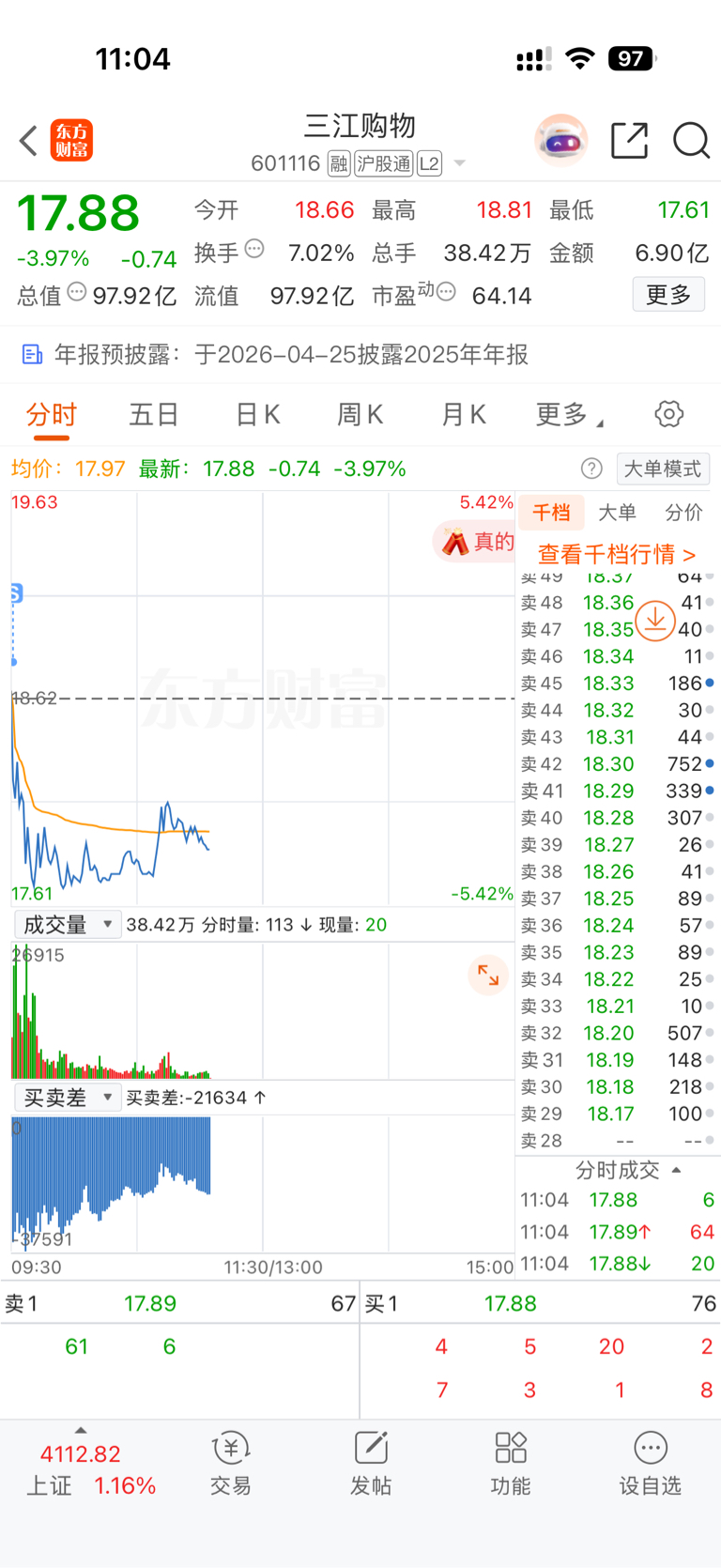 $三江购物(SH601116)$ 一早就割了,主力没给你机会?真是一群贪婪的人