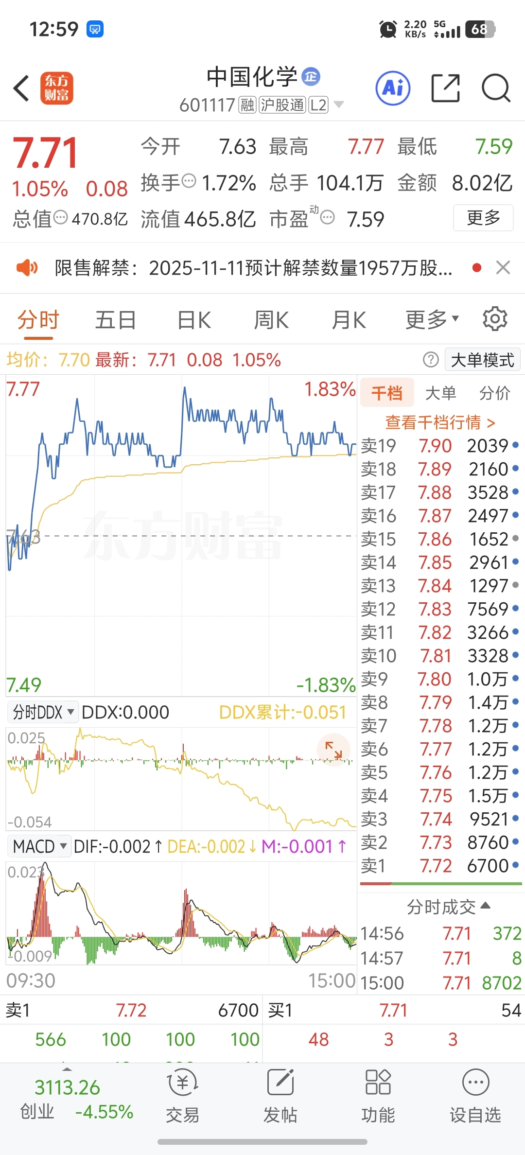 $中国化学(SH601117)$ 机构疯狂压单,不想涨