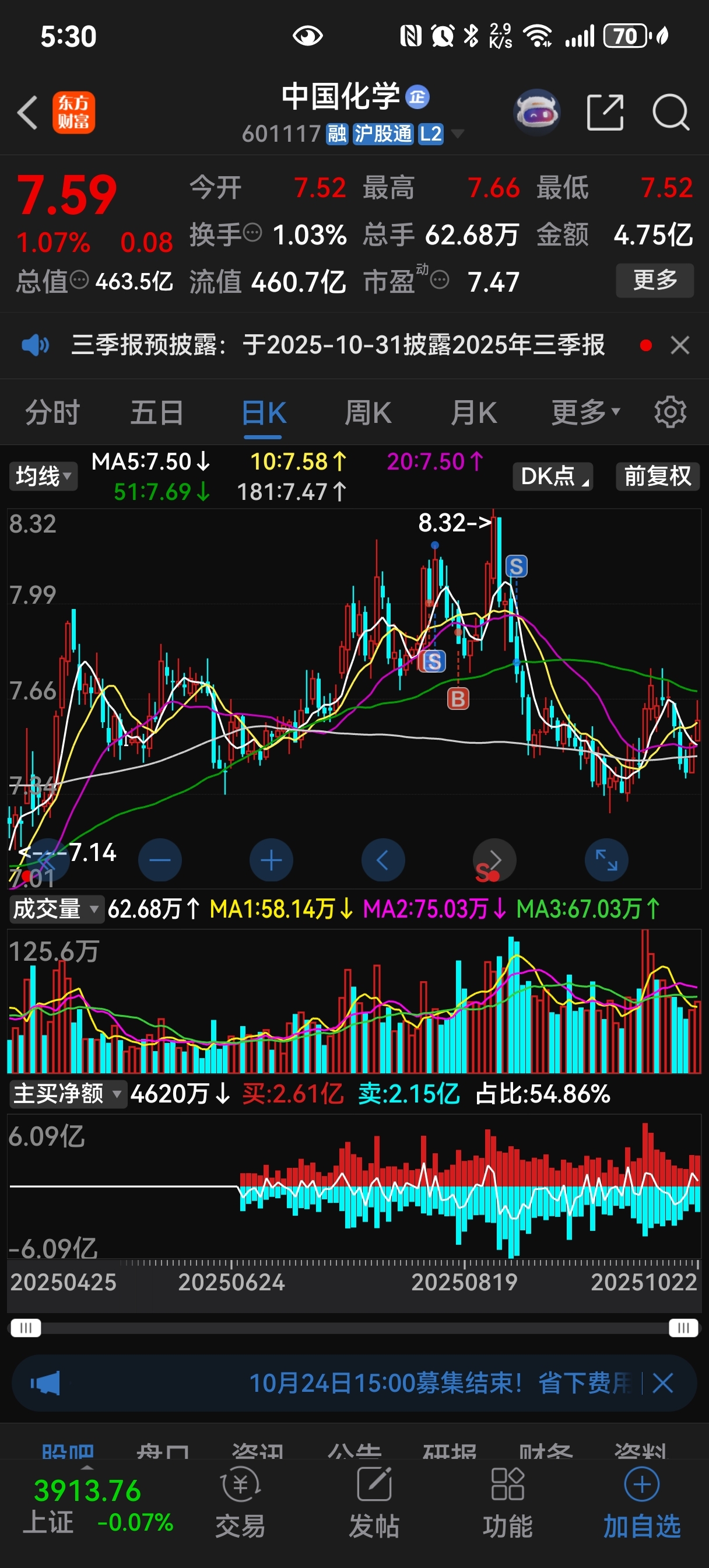 $中国化学(SH601117)$ 还好当时割肉了