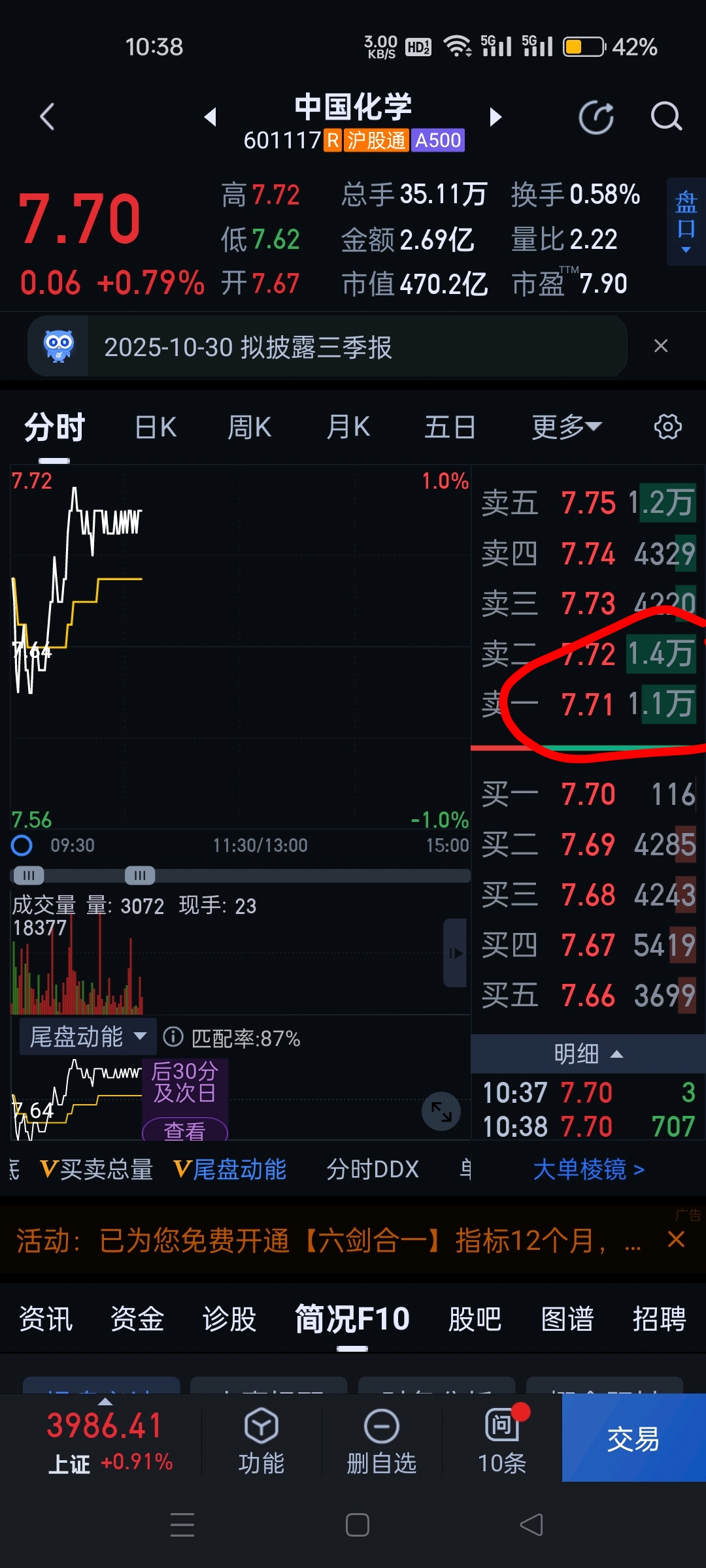 $中国化学(SH601117)$ 不怕压单就怕拖单,有本事继续压,看怎么被吃掉的