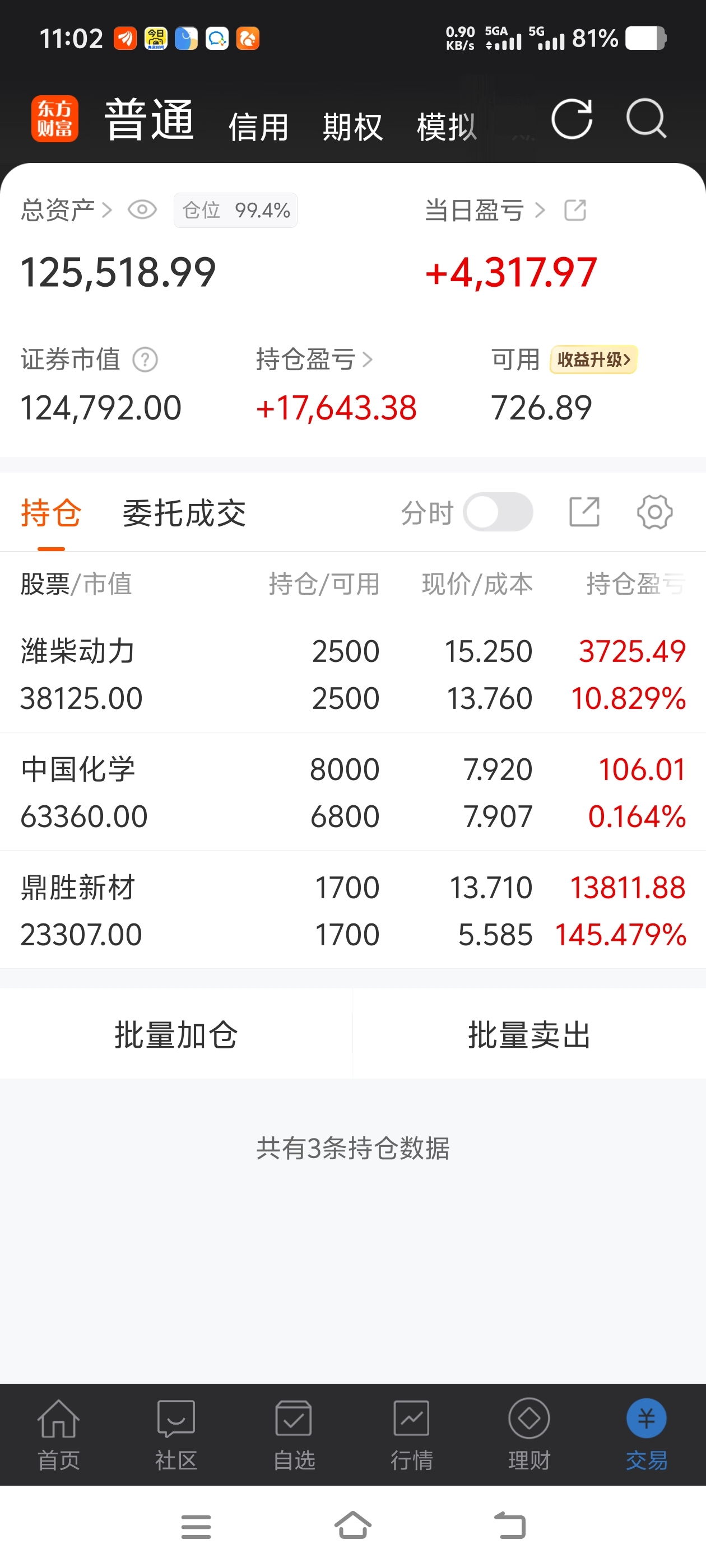 $中国化学(SH601117)$ 拿一年了没挣着钱,卖了鼎盛补仓