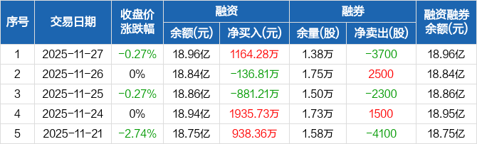 中国化学:融资净买入1164.28万元,融资余额18.96亿元(11-27)