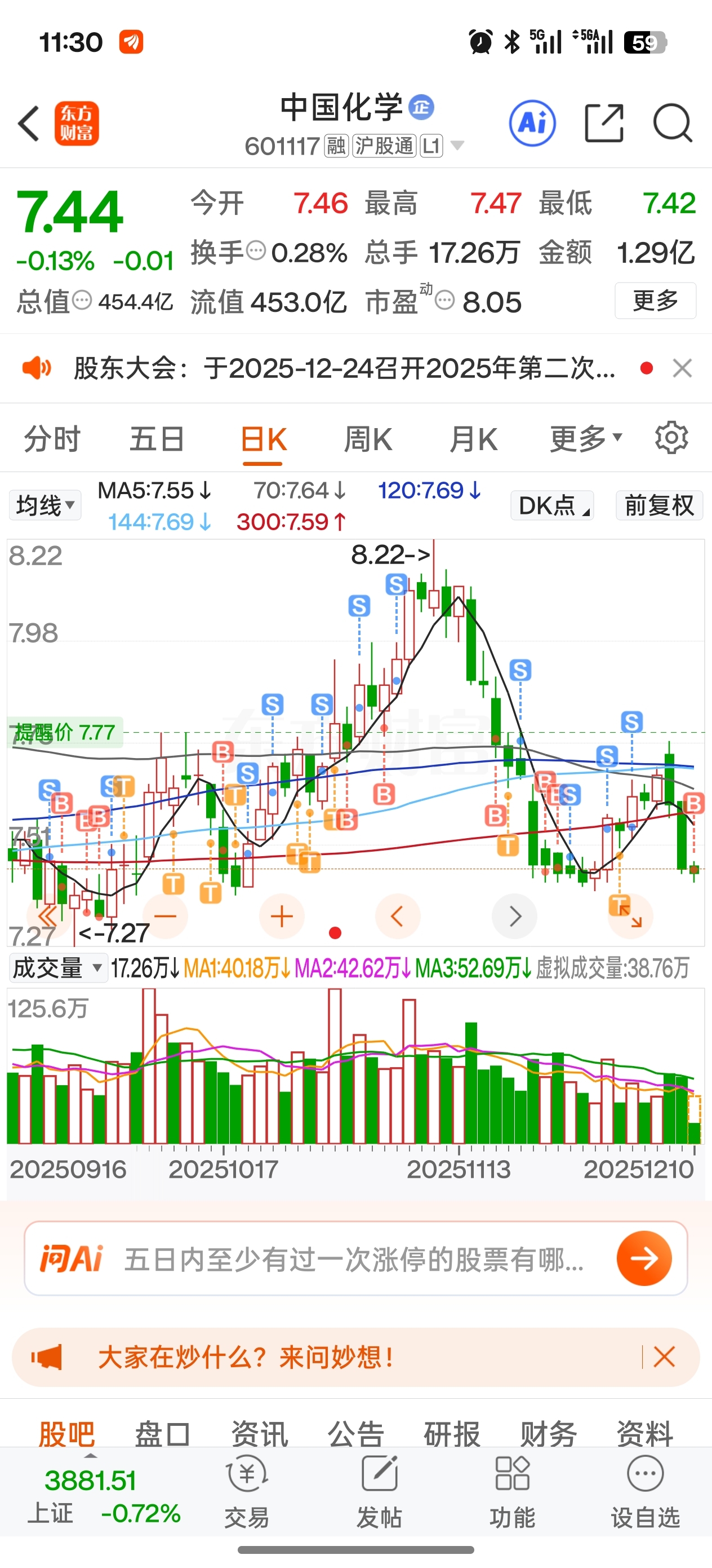 $中国化学(SH601117)$ 俺又回来了,求主力不杀
