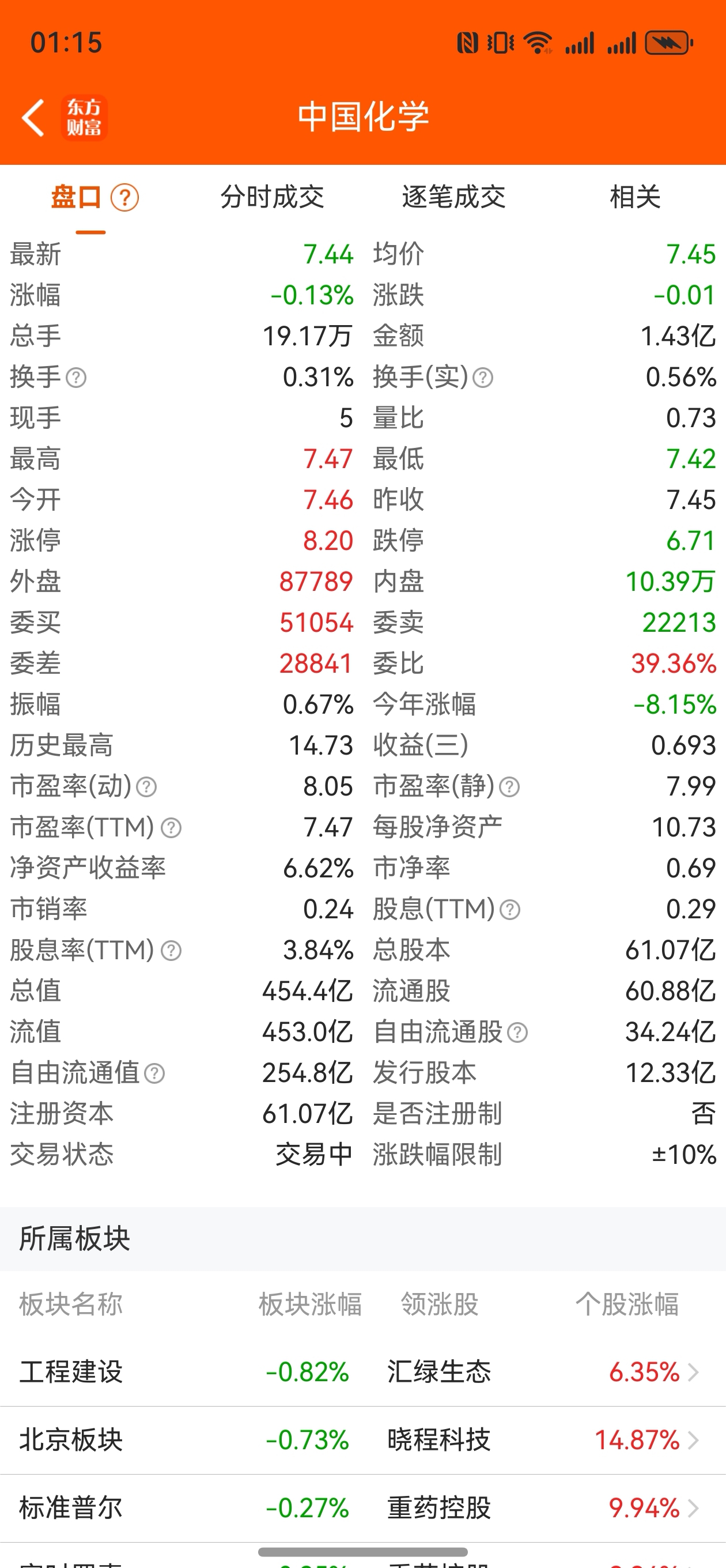$中国化学(SH601117)$ 这个,业绩增长,股票还下跌这么多
