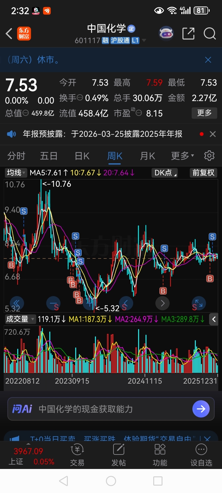 $中国化学(SH601117)$ 买了中国化学白干了一年,做T也降不低成本,今年涨幅负数!哎!等来牛市还亏钱。想到都心酸,祝化学的小股东们新年快乐,祝化学在2026年股价翻倍!
