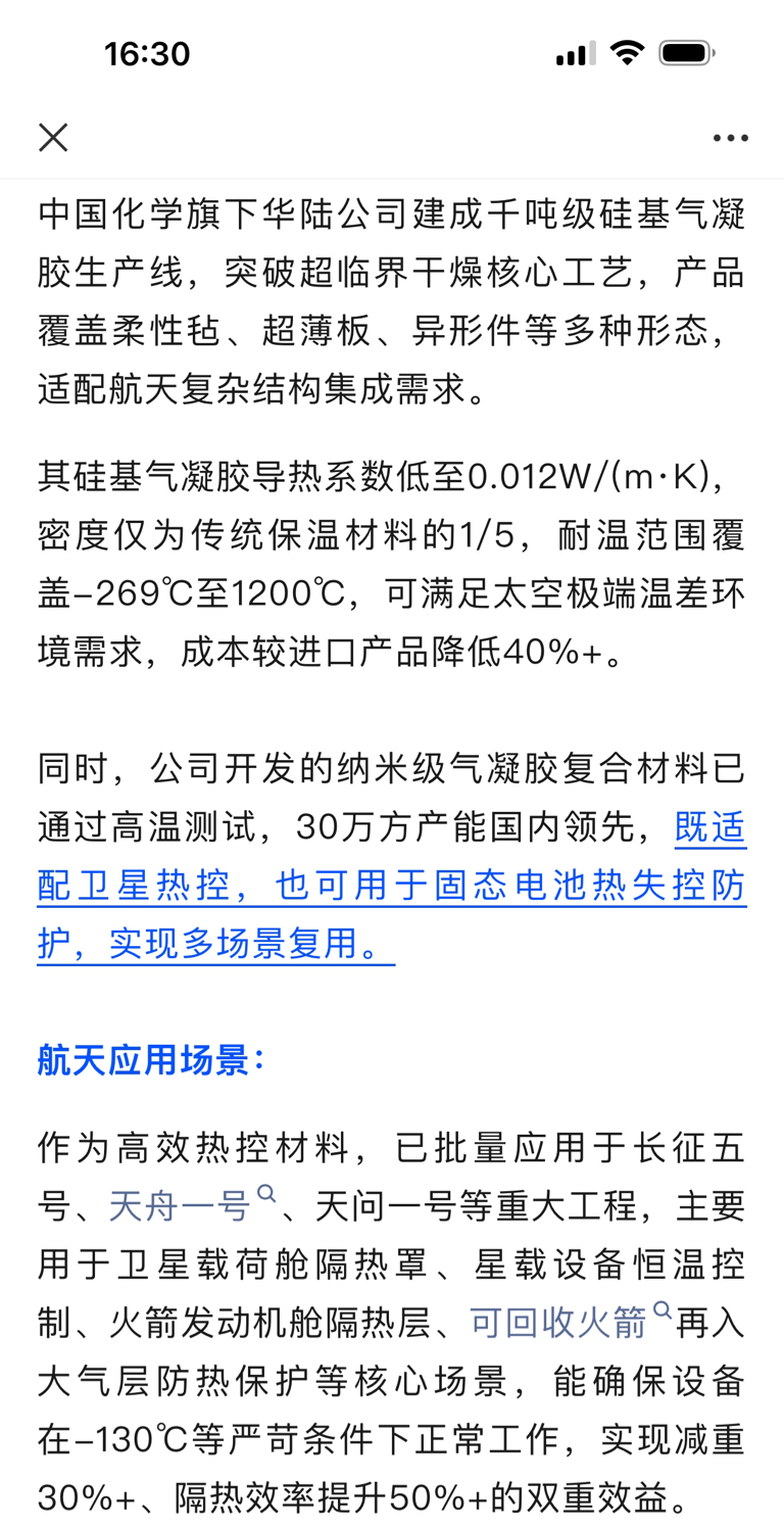 中国化学开发的气凝胶主要应用在火箭,也是商业航天概念呢。中国化学商业航天新材料应