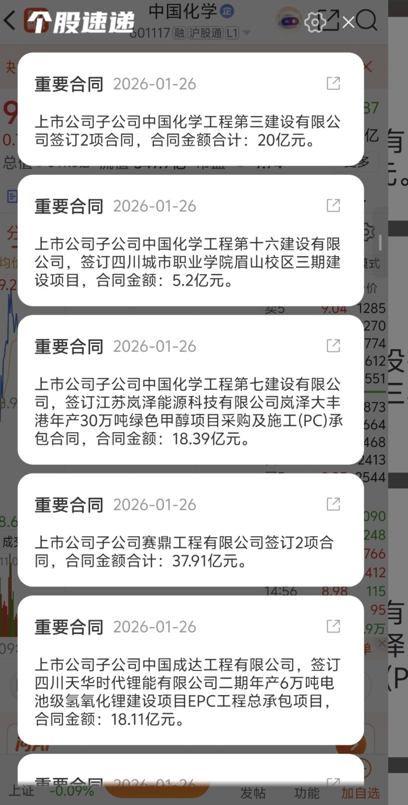 $中国化学(SH601117)$ 签了这么多合同,这是利好吧