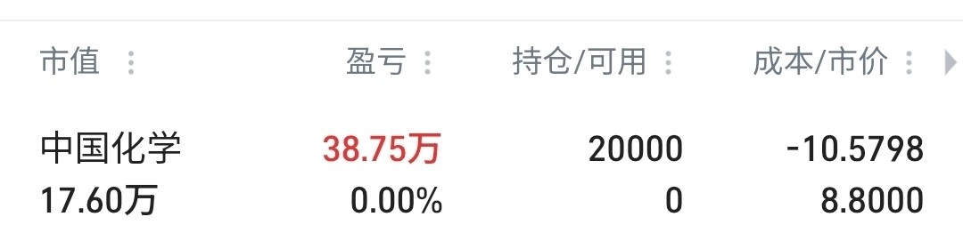 $中国化学(SH601117)$ 真的太菜了这个股。走了。你们发财。今天8.95还买了两万。白瞎咯。
