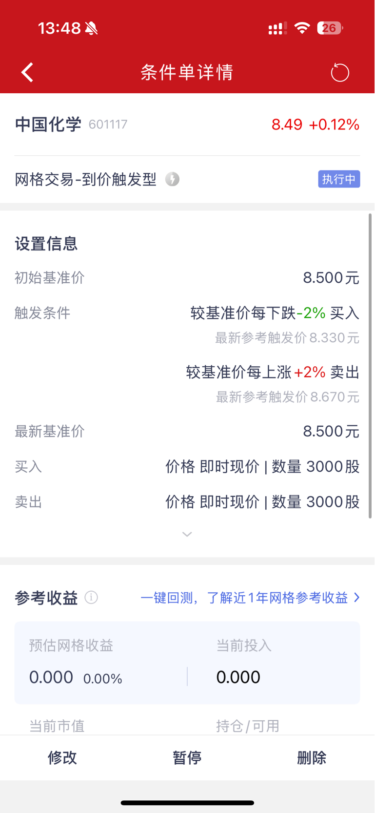 $中国化学(SH601117)$ 从今天开始,打算做化学的网格交易,全部交给软件自动去操作,累了。