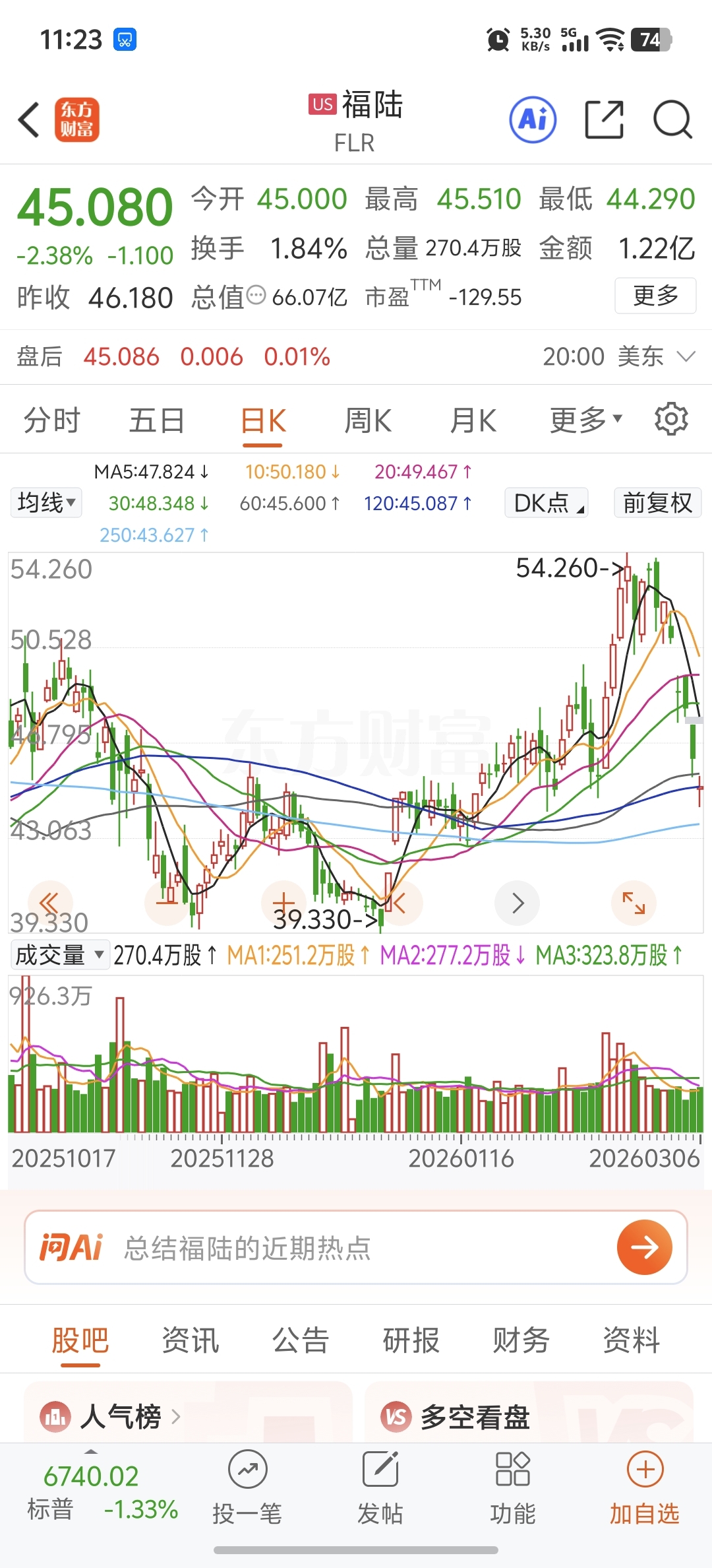 同行福陆的走势,参考一下