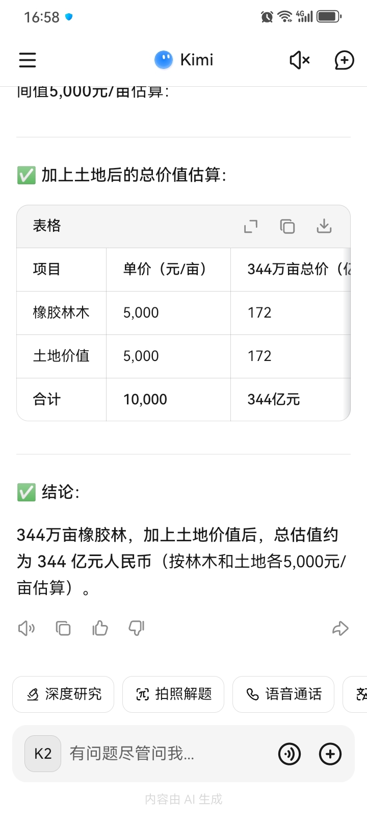 $海南橡胶(SH601118)$ 农垦给它儿子海南橡胶留了344万亩橡胶林,如果全部归位,大家算一算股价值多少。