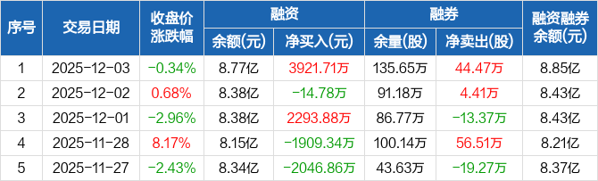 海南橡胶:融资净买入3921.71万元,融资余额8.77亿元(12-03)