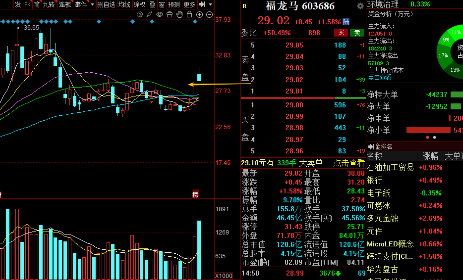 竞价阶段表现相当强势,大幅高开后直接迅速上板,这个走势还是比较符合预期的,就是开得有点高没敢跟进。不过后续受板块调整以及锂板块转弱的影响,呈现出强势分歧的局面,好在最终维持了不错的涨幅。主力虽然有流出,但盘中整体接力相当不错,整体向上的趋势依旧还在,而且今天的高开位置留下了缺口。预计明天可能会顺势回踩这个缺口,要是有接力的话,还是有望重拾升势继续向上运行,保持观察