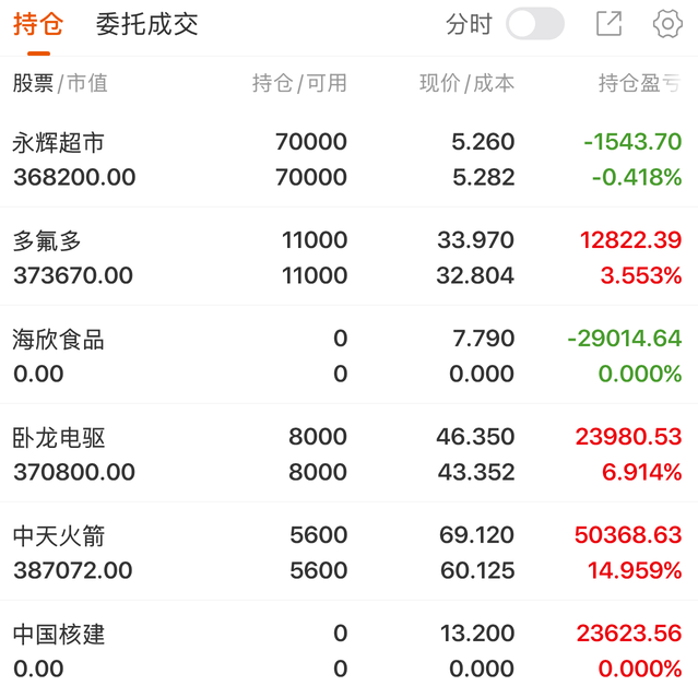 兄弟们,今天这波获利回吐真的给我上了一课! 近期的切入都还是不错的,今天的清仓的海欣食品、中国核建,还有手里的中天火箭、多氟多,都是带着不错盈利在握,结果硬生生把利润吐得心疼,心态有点小崩啊!