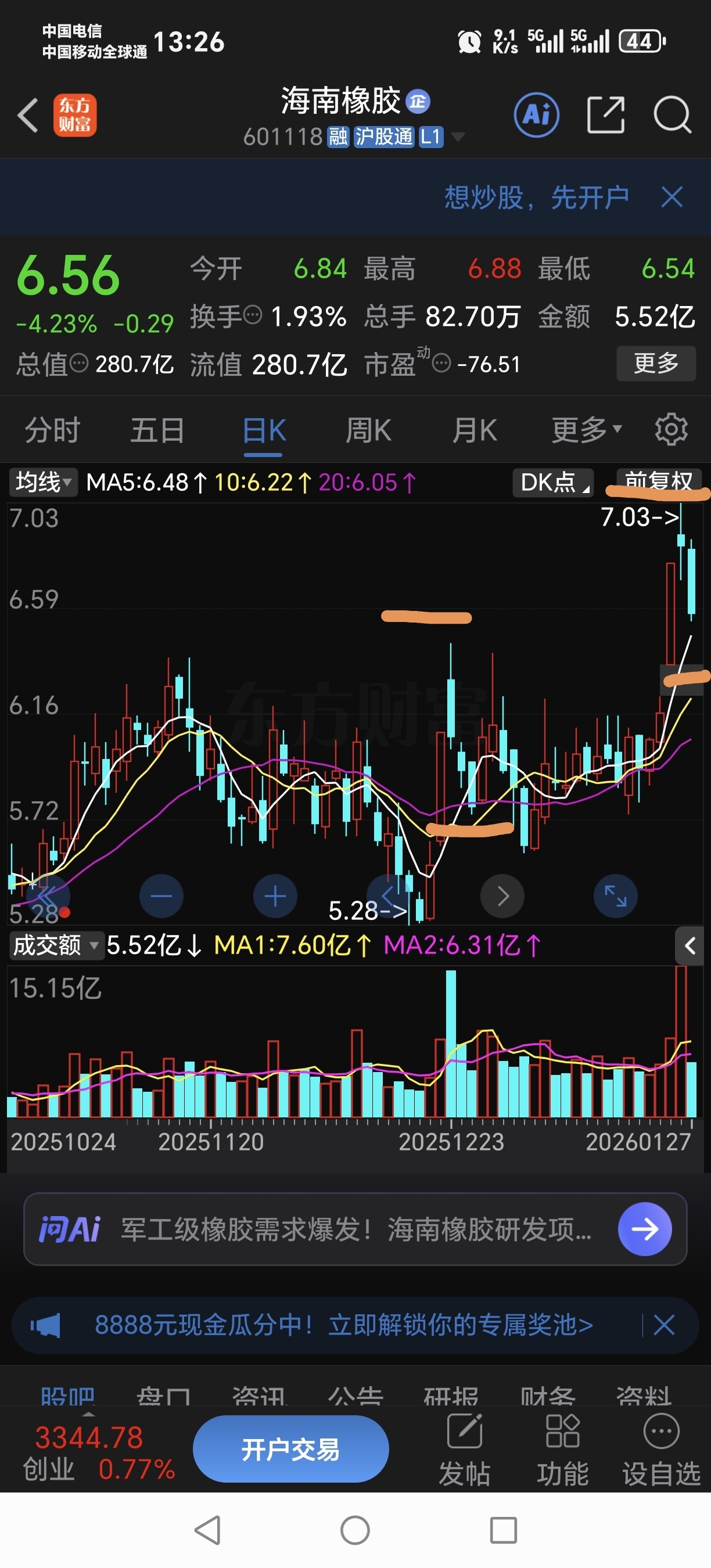 $海南橡胶(SH601118)$ 明天再跌一天,就可以进了