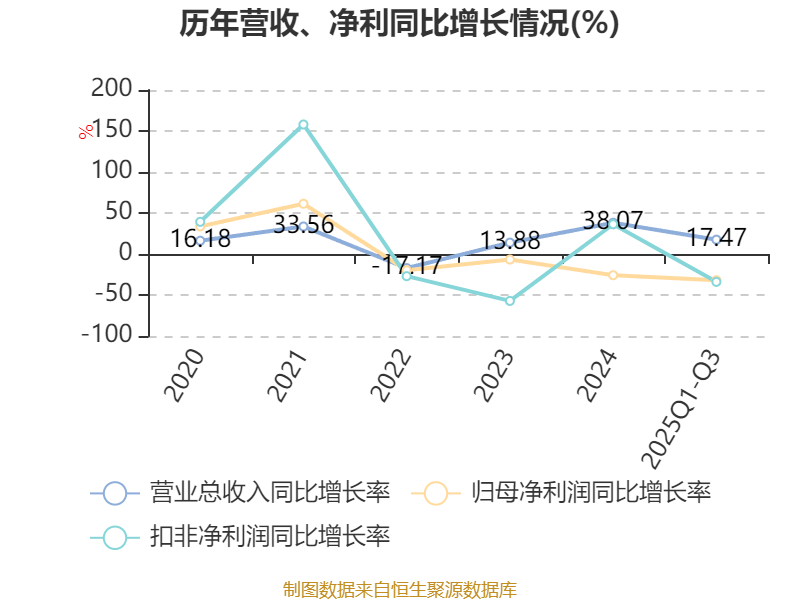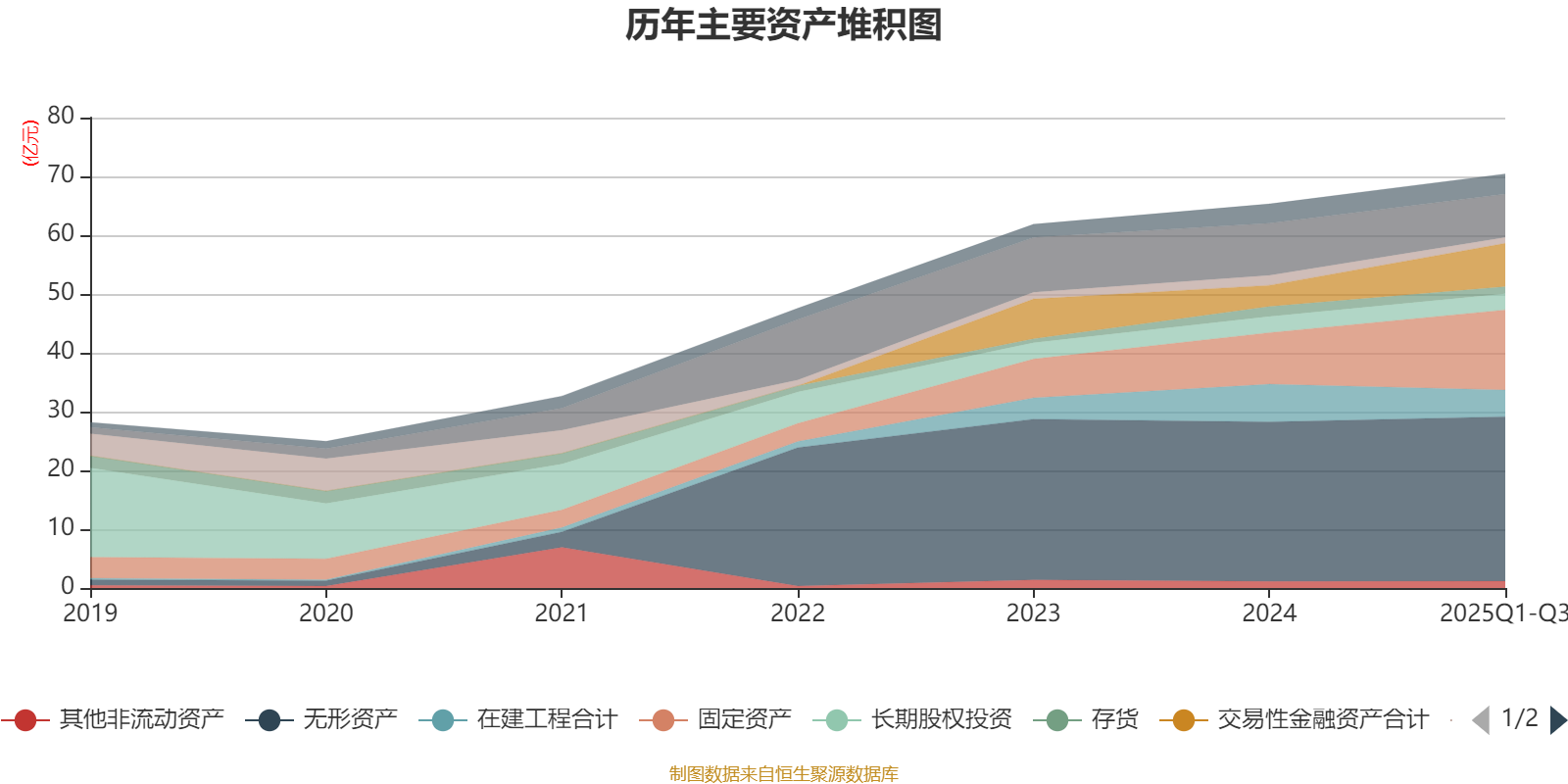 资产重大变化方面,截至2025年三季度末,公司固定资产较上年末增加55.26%,占公司总资产比重上升5.91个百分点;交易性金融资产合计较上年末增加104.61%,占公司总资产比重上升4.96个百分点;在建工程合计较上年末减少29.16%,占公司总资产比重下降3.37个百分点;货币资金较上年末减少16.92%,占公司总资产比重下降3.12个百分点。