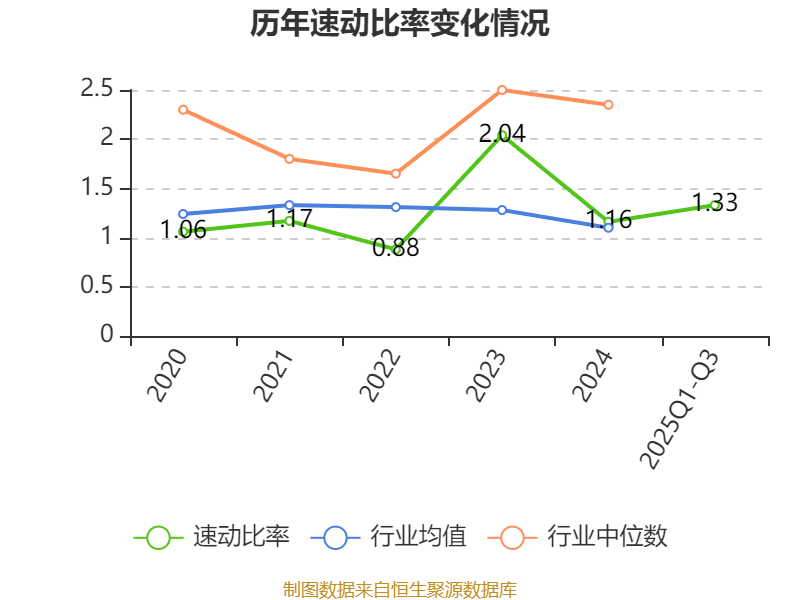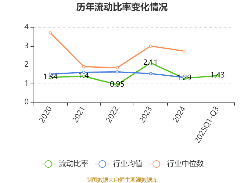 2025年前三季度,公司流动比率为1.43,速动比率为1.33。