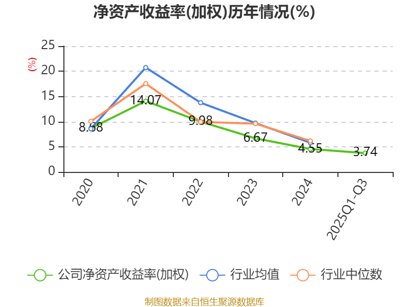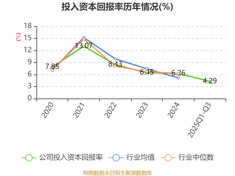 盈利能力方面, 2025年前三季度公司加权平均净资产收益率为3.74%,同比下降1.78个百分点。公司2025年前三季度投入资本回报率为4.29%,较上年同期下降2.72个百分点。