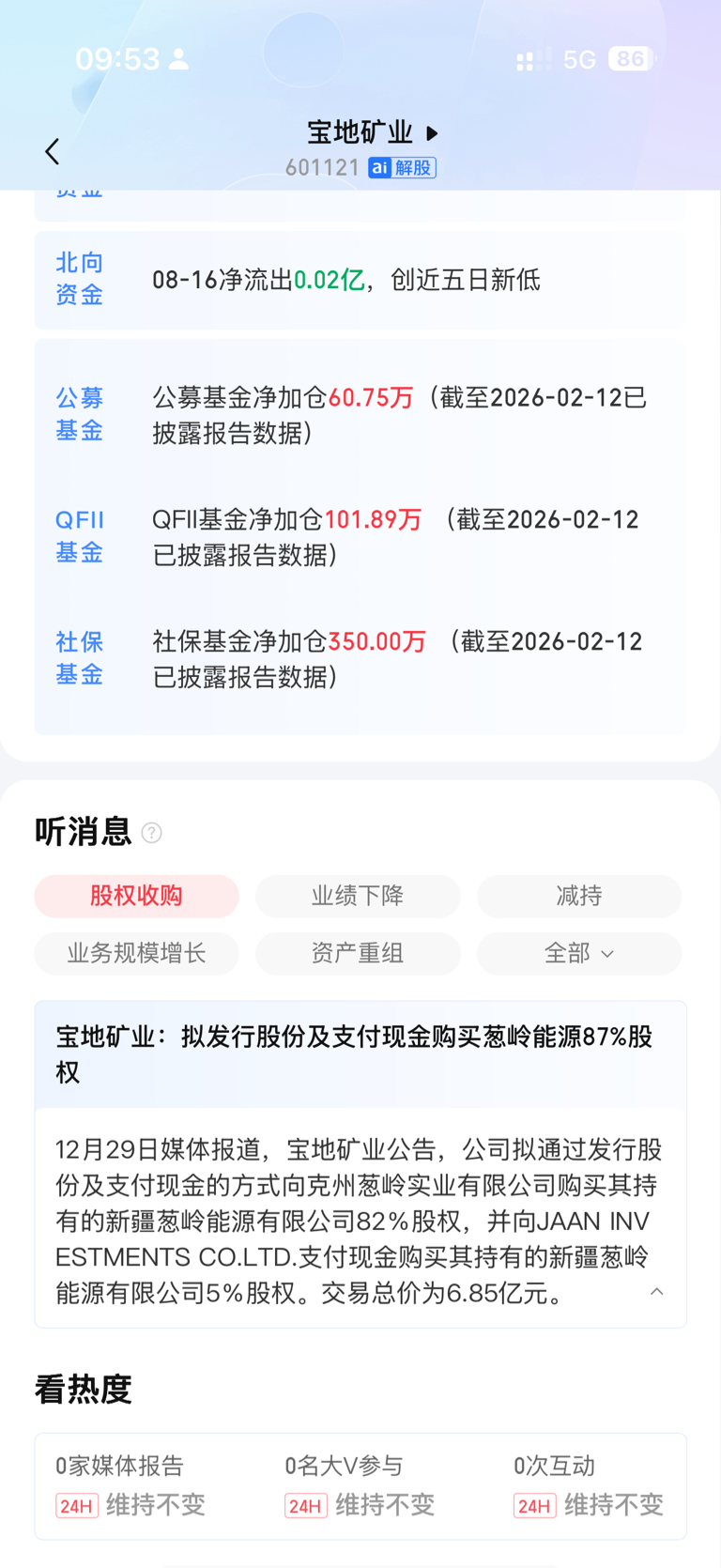 $宝地矿业(SH601121)$ 基金加仓,长期看好
