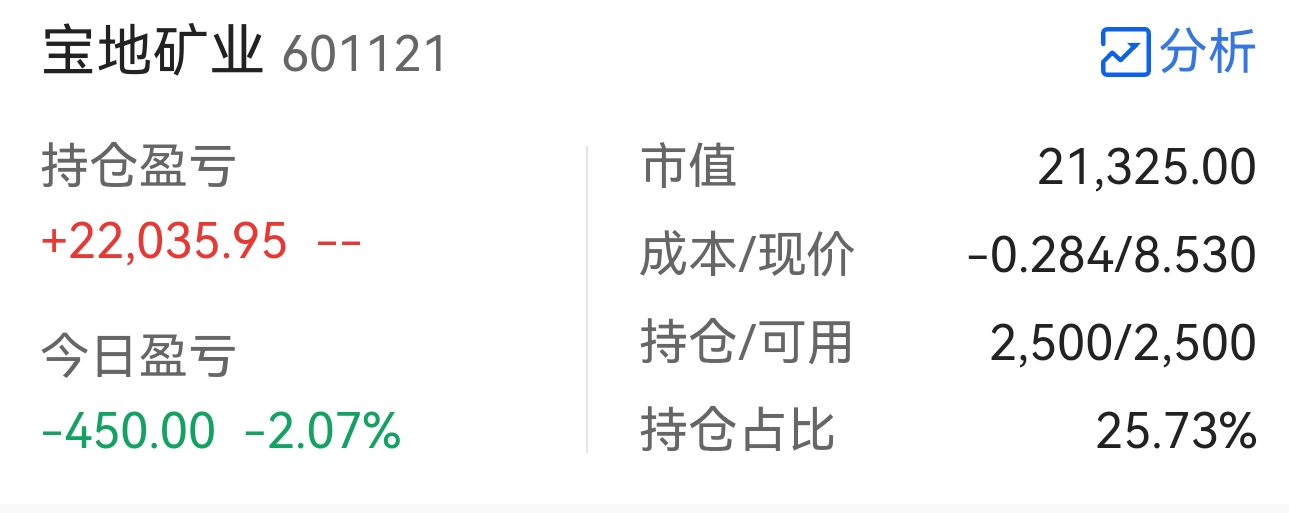 $宝地矿业(SH601121)$ 轻仓了,过完年再说吧
