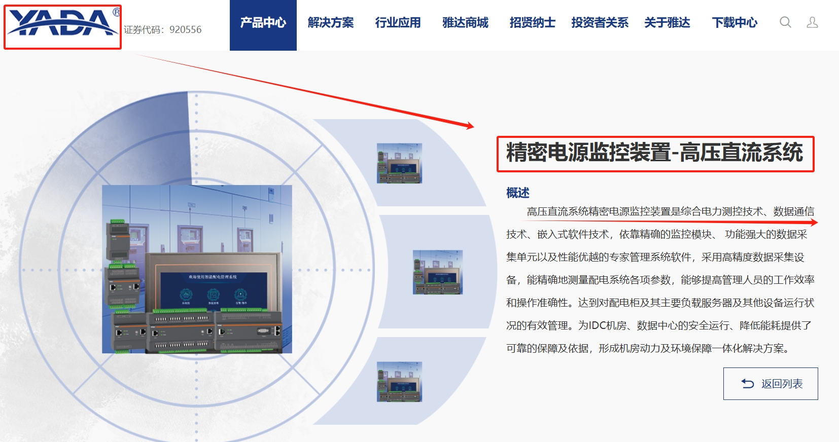 雅达股份,子公司高压直流配电柜系统、高压直流检测仪表(下图)