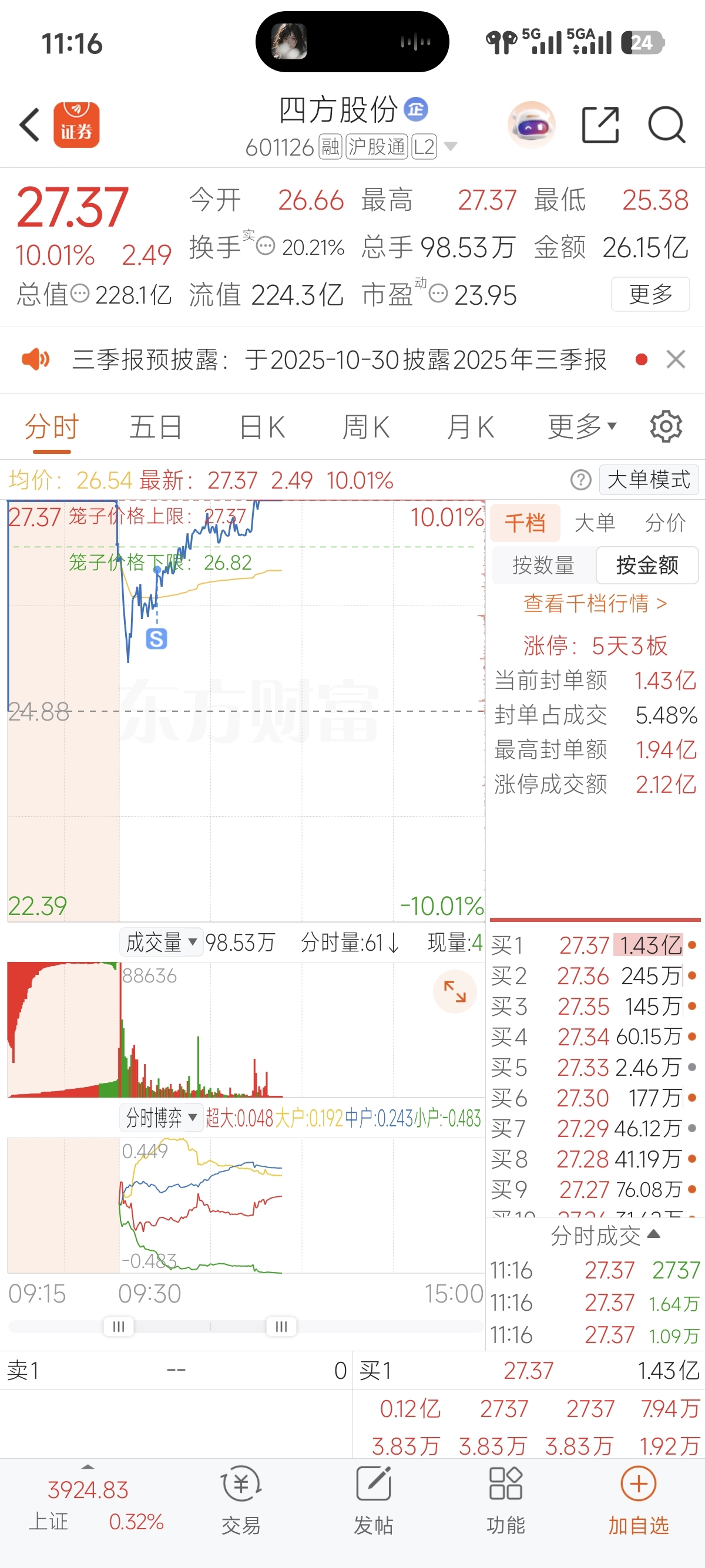 $四方股份(SH601126)$ 格局小了但是没割肉,有盈利