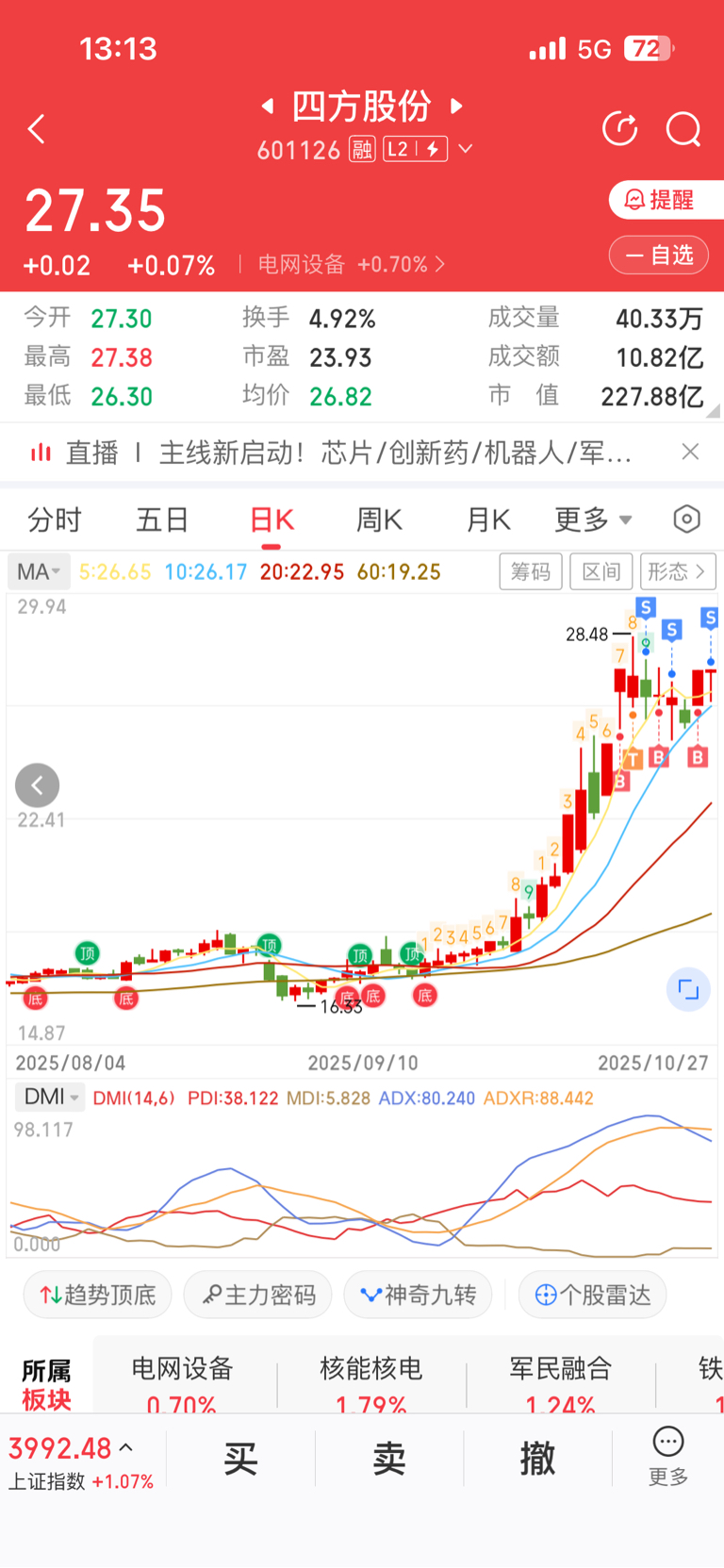 $四方股份(SH601126)$ 玩一周多买卖点也抓的好,才挣你9个点,真恶心人,天天假突破