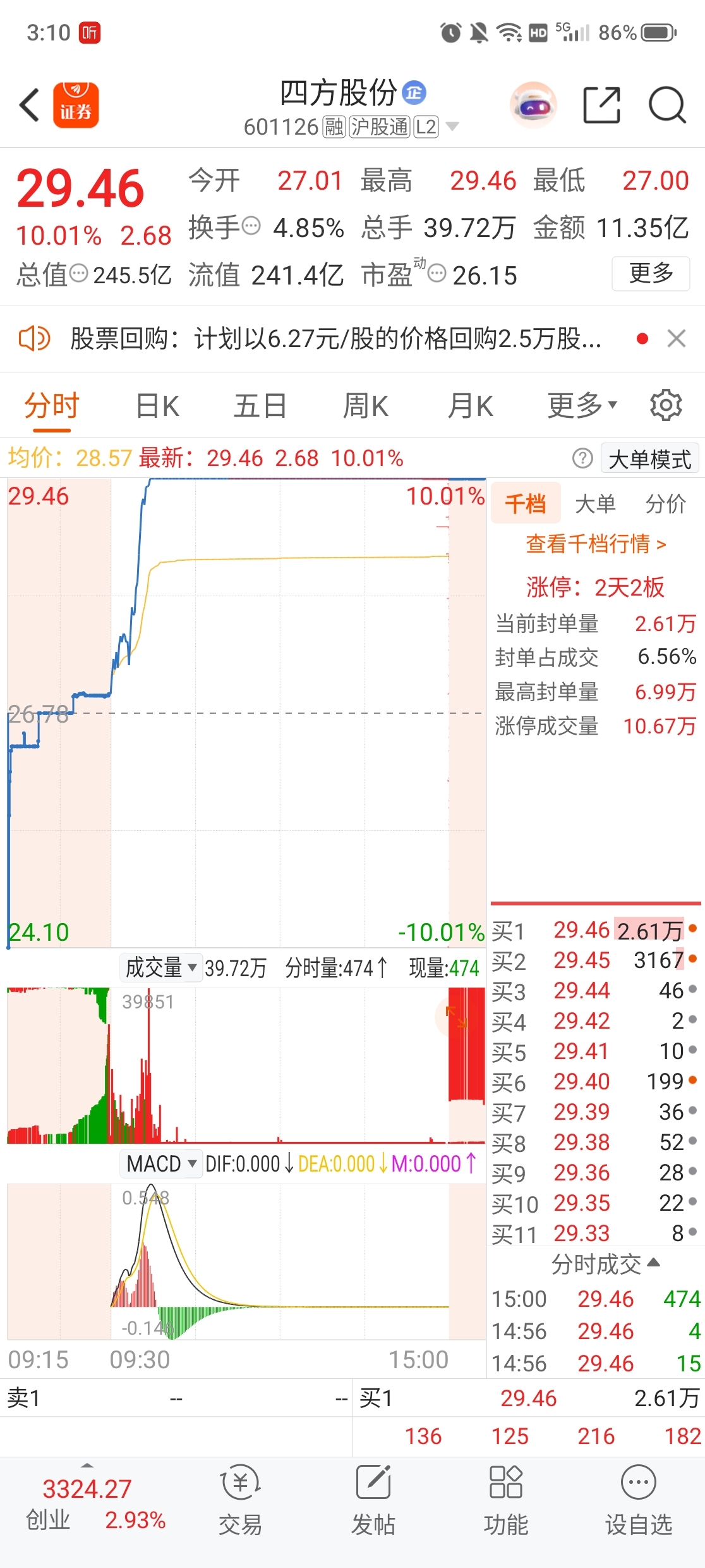 $四方股份(SH601126)$ 怎么变成2天两板了