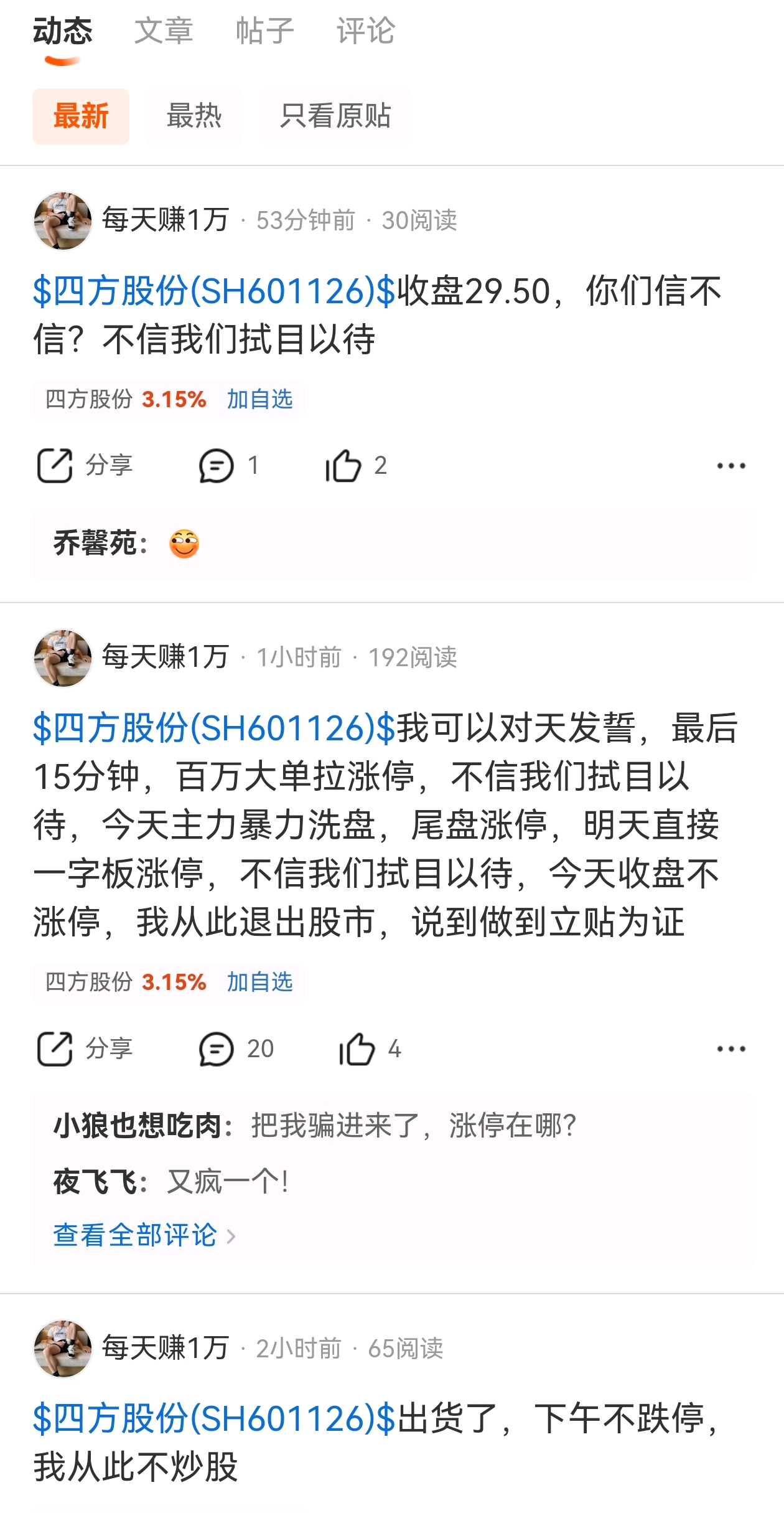 $四方股份(SH601126)$ 先不说股票怎么样,股吧里有个精神病的股,一般不好涨。