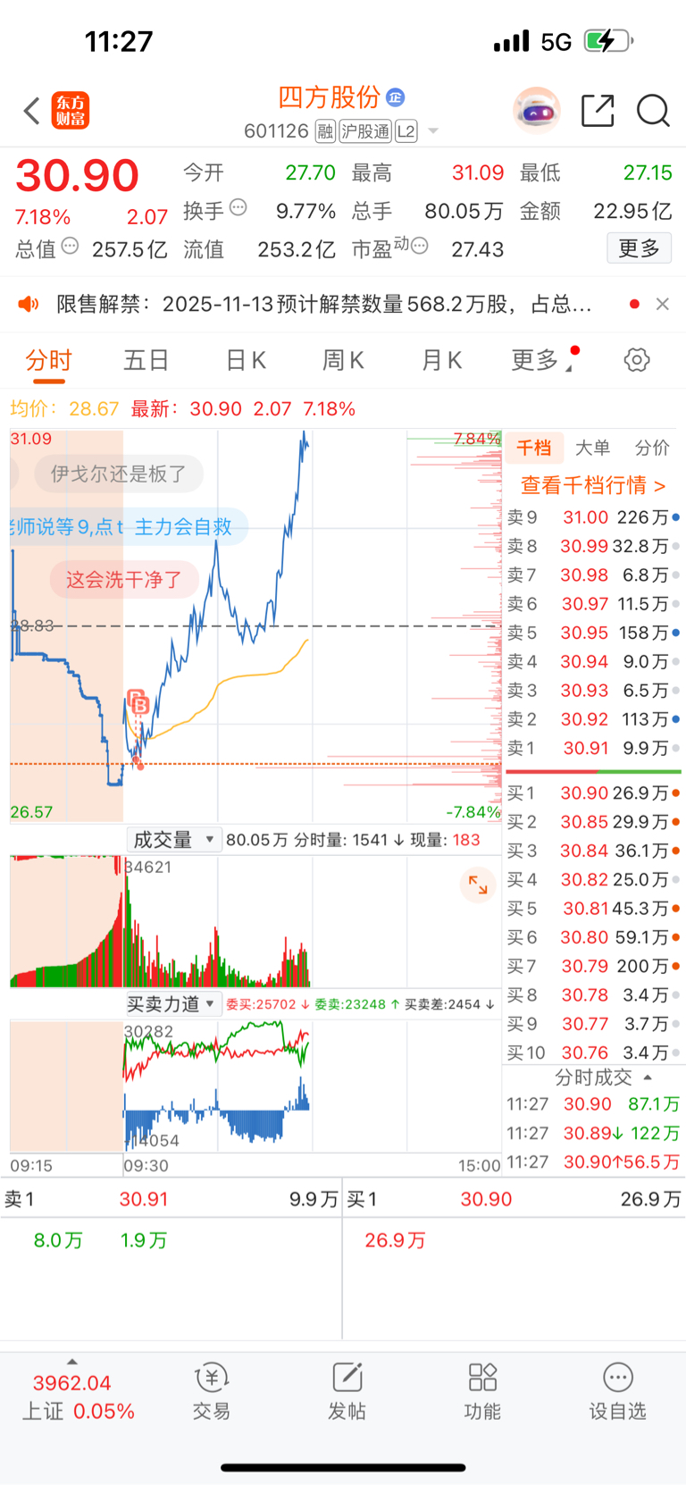 $四方股份(SH601126)$ 早上霍普股份顶住分歧封板,带动资金进攻,中军特变电工,四方稳了,第一波龙头